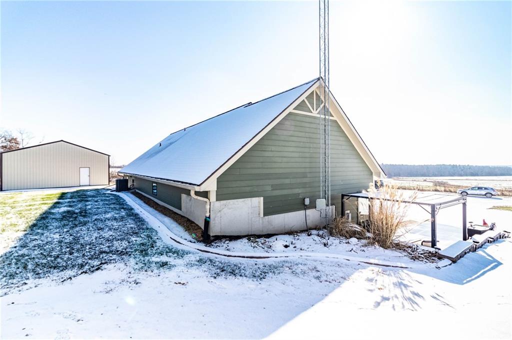 Welcome to this beautifully custom built, partial earth contact home with 3-bed, 3.5-bathrooms filled with plenty of upgrades. Perfectly situated on 12 acres in Windsor, MO., this stunning residence boasts a variety of interior and exterior enhancements, offering modern comfort with timeless charm. Step inside to discover an inviting open floor plan with spacious ceilings throughout. The kitchen features granite countertops, custom cabinetry, a walk-in pantry, and stainless steel appliances, making it a perfect space for cooking and entertaining. The spacious living/dining area is filled with natural light, creating a warm and welcoming atmosphere with beautiful engineered hardwood flooring. The family room off the living area is so versatile, ideal for an office, mother in-law suite, or as a gameroom and sure to captivate your guests with endless entertainment. The master suite offers a private retreat with a spa-like en’suite bathroom featuring a walk-in shower, jacuzzi tub, and a generous walk-in closet. There is a laundry room and an additional bedroom on the main level. Upstairs you will find a sitting room, the 3rd bedroom, and another full bathroom. This bedroom walks out to a 2nd story deck. All bathrooms are custom tiled to enhance the theme throughout. Outside, you’ll find a wide-open yard, a covered front porch, and an open patio for outdoor entertaining or relaxing. Fenced pasture allows for your livestock of choice. The property also features a small pond and dock. Exterior home upgrades include a 50 year composition roof, James Hardie fiber cement siding, and energy-efficient fiberglass/wood windows, ensuring durability and curb appeal. Matching the main home is a 2 car detached garage added within the last 4 years. Also included is a 20x30 workshop with concrete floor and a 30x40 barn for all your equipment - both with ample electricity! Nestled back in a quiet part of the property, well off the main road, this home is just minutes from Whiteman AFB.