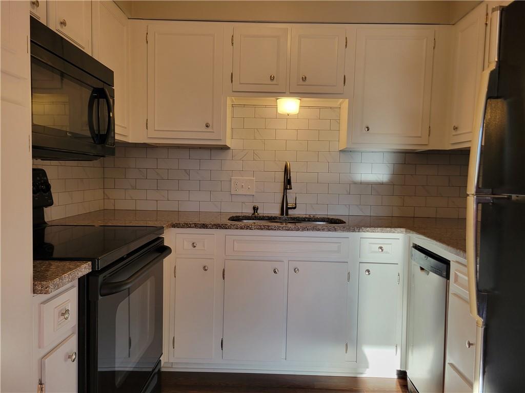 Nestled just steps from the lively heart of downtown Overland Park and its popular farmers market, this delightful upper-level condo offers a blend of character and convenience. Inside, you'll find an updated kitchen adorned with granite countertops, new back splash, vinyl floor and stylish cabinetry, creating a sleek space for meal prep. The generously sized bedroom includes dual walk-in closets and a cozy corner ideal for a small desk or reading nook. Hardwood flooring flows throughout, adding warmth to the bright and open living space. Enjoy your own private balcony—an ideal spot to relax at the start or end of the day. A remodeled bathroom and in-unit laundry enhance functionality, while extra basement storage ensures everything has its place. With maintenance provided and a pet-friendly policy for cats, this well-cared-for condo is move-in ready and offers low-maintenance living in a sought-after location.