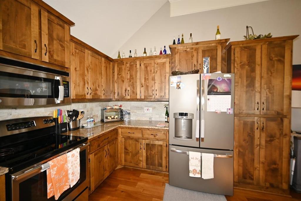 This home features an oversized three-car garage with a dedicated storage room. The lower level offers a beautiful, spacious family room, a full bathroom, and a large bedroom. On the main level, you’ll find gorgeous hardwood floors throughout, a stunning stone fireplace, an open dining area, and a kitchen with abundant cabinetry and granite countertops. The main-level laundry room adds convenience, and there is also a full guest bathroom. This level includes two additional bedrooms and a large master bedroom with carpet. The master bathroom features a dual vanity, a walk-in shower, and a walk-in closet and additional closet space. Outside, the property offers a large backyard and a covered deck perfect for relaxing or entertaining.