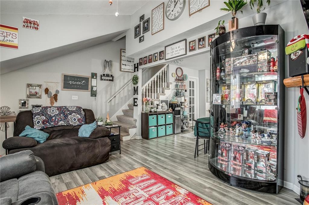 Welcome home to this spacious 3-bedroom, 2.5-bath townhouse in the desirable Rock Ridge community. With comfortable living space and a 1.5-story layout, this end-unit offers the perfect blend of convenience, privacy, and low-maintenance living. Step inside to a light-filled great room featuring vaulted ceilings, a cozy fireplace, and easy flow into the dining area—ideal for everyday living or hosting friends. The main-level primary suite provides true comfort with its own private bath and direct outdoor access. Upstairs, you’ll find two additional bedrooms and a full bath, giving everyone their own space. The kitchen offers ample storage and overlooks the tree-lined backyard, and the large deck is the perfect spot for morning coffee or evening unwinding. A 2-car attached garage, main-level laundry, and views of the surrounding trees add to the everyday ease of this home. Tucked in a convenient location near 435, the Legends, shops, restaurants, and more, this townhome offers both tranquility and accessibility. A well-maintained community and a layout that lives like a single-family home—this one is ready for its next chapter. Come take a look and see why this Rock Ridge gem stands out!