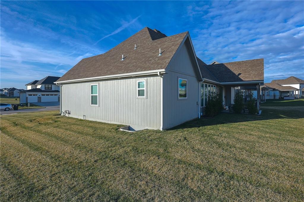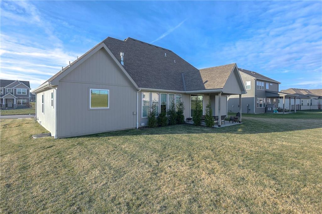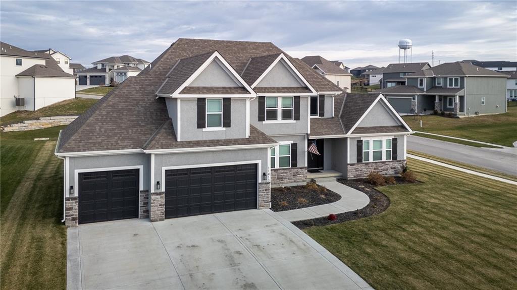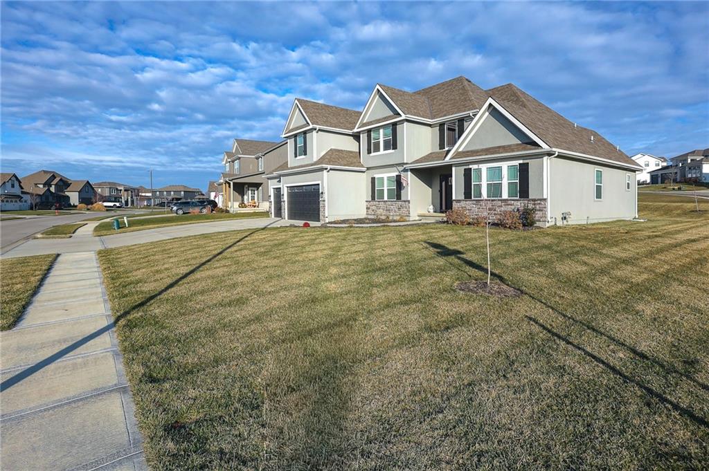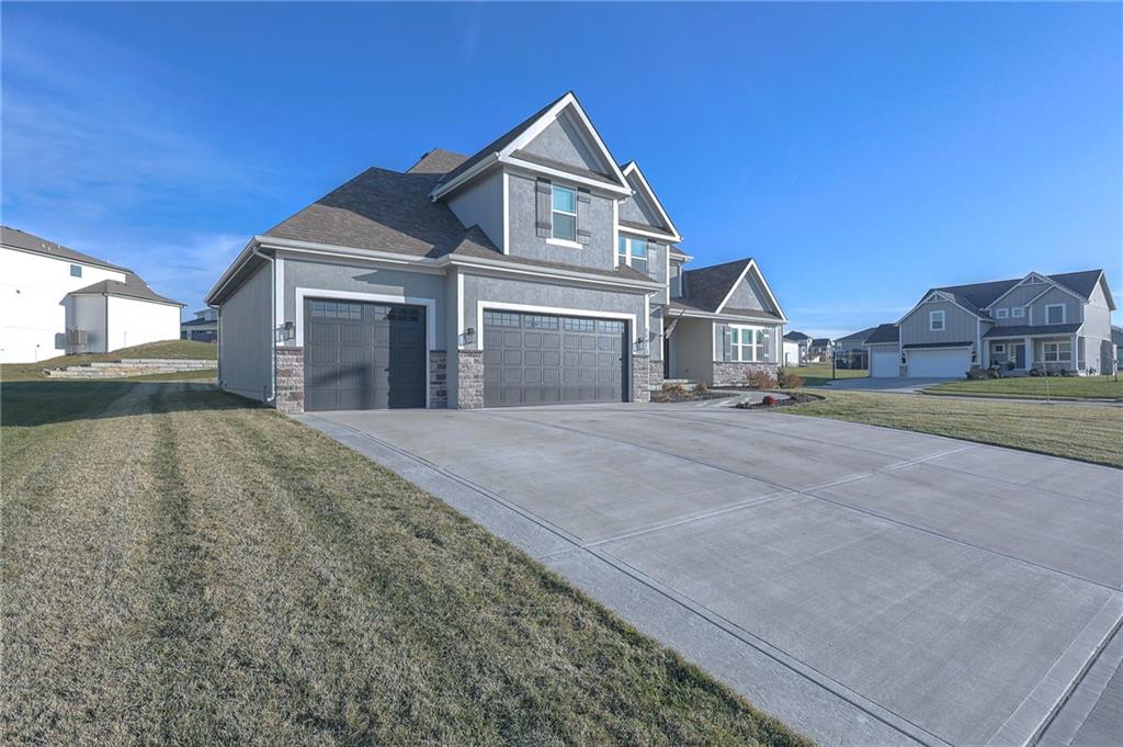 Perfectly sited on a premier corner lot within the prestigious Prairie Field community—highly acclaimed Liberty School District—this exceptional 1.5-story residence by McBee Custom Homes redefines modern luxury. The Gallatin is a home where architectural intention meets elevated comfort, creating a sophisticated living experience that feels both grand and effortlessly livable. From the moment you step inside, you’re welcomed by an awe-inspiring Great Room with dramatic vaulted ceilings and sun-filled, open-concept living. The designer kitchen serves as the heart of the home, anchored by a statement island that invites conversation and connection. An expansive walk-in pantry offers the kind of storage typically reserved for custom luxury builds. The main-level primary suite is a serene sanctuary, featuring a spa-inspired bath with a free-standing soaking tub, an indulgent walk-in shower, and timeless finishes that exude calm and sophistication. Upstairs, three beautifully appointed bedrooms and two full bathrooms offer exceptional versatility. Whether used as private guest suites, a children’s wing, a loft, or a boutique-style office, this level adapts seamlessly to your lifestyle. A second flex room on the main level elevates functionality even further—perfect as an executive office, library, music room, playroom, or formal dining space. Your possibilities are truly limitless. The lower level provides an expansive storage area with an egress window, creating the perfect canvas for a future bedroom or custom-designed additional living quarters. Outdoors, the home’s ideal southern orientation provides luxurious shaded evenings on the covered porch—your private retreat for slow sunsets, quiet moments, and effortless entertaining. The Gallatin is more than a home—it’s a statement of style, comfort, and craftsmanship in one of the area’s most desirable communities. A rare opportunity to own a property where luxury meets lifestyle in the most seamless way.