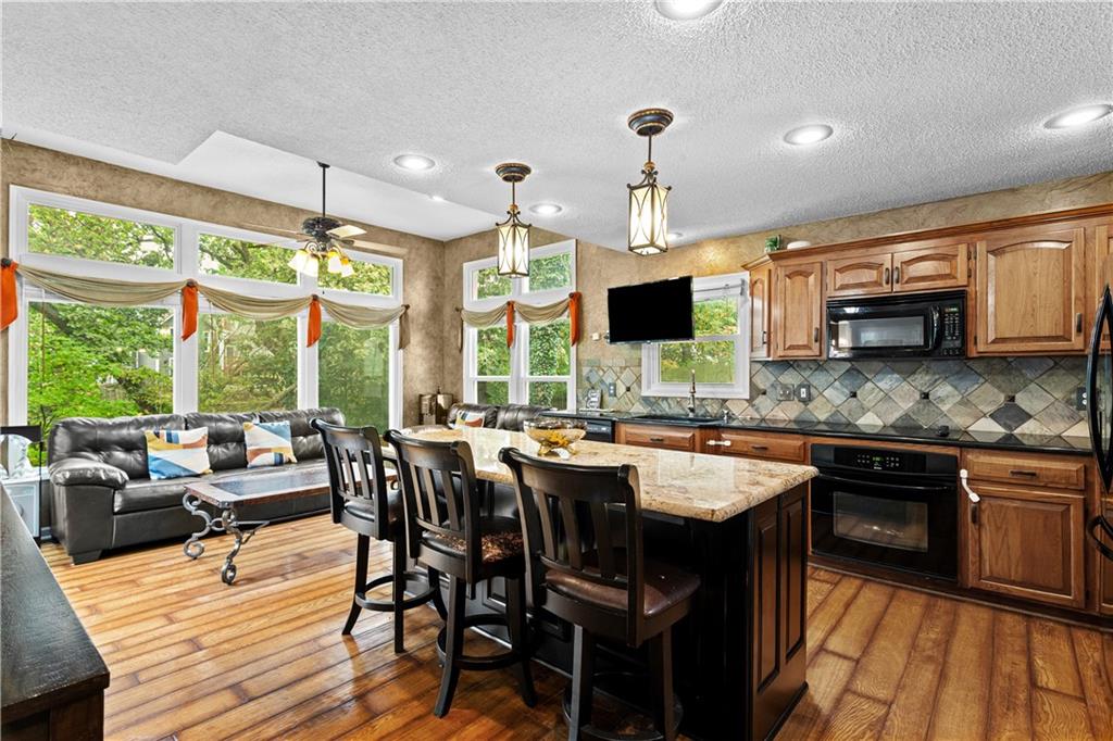 This beautiful 2 Story home is located in a quiet cul-de-sac with private backyard firepit and level side yard. Enjoy the abundance of space featuring an expansive main level designed for a big family or entertaining. The open concept kitchen with cabinets galore and large center island extends to a breakfast/sitting area surrounded by windows to enjoy natures scenery and easily access the outdoor deck space. In addition the formal dining and main floor laundry add even more convenience. The master suite will be your personal luxury retreat where you wind down in front of the fire place reading or watching TV before retiring to the sleeping area. The elegant master bath and multiple walk in closets only add to the lux lifestyle. Utilize the other 3 upper level bedrooms that will share the main hall bath with double vanity and tub/shower. The walk out lower level features so much space for additional living and entertaining with a 3rd fireplace, wet bar, hard floors for rec room or workout space and the 3rd FULL Bath, as well as a large storage area. Affordability meets space and convenience with easy access to 470, 40 Hwy, 7 Hwy and I-70.