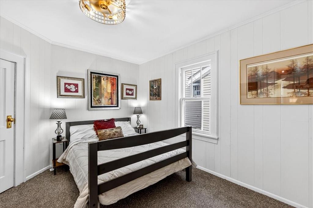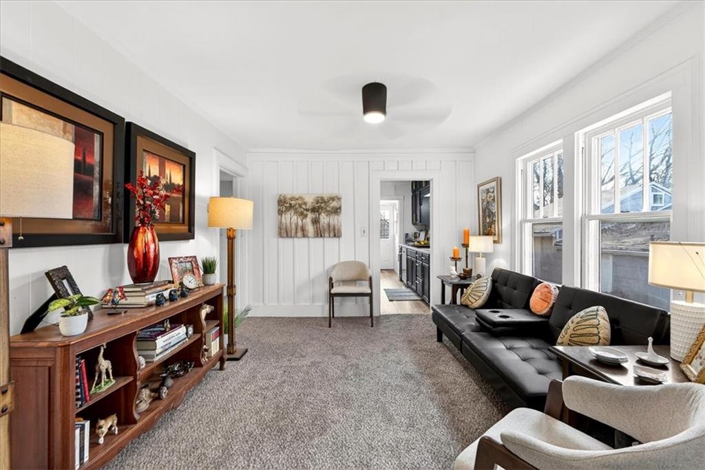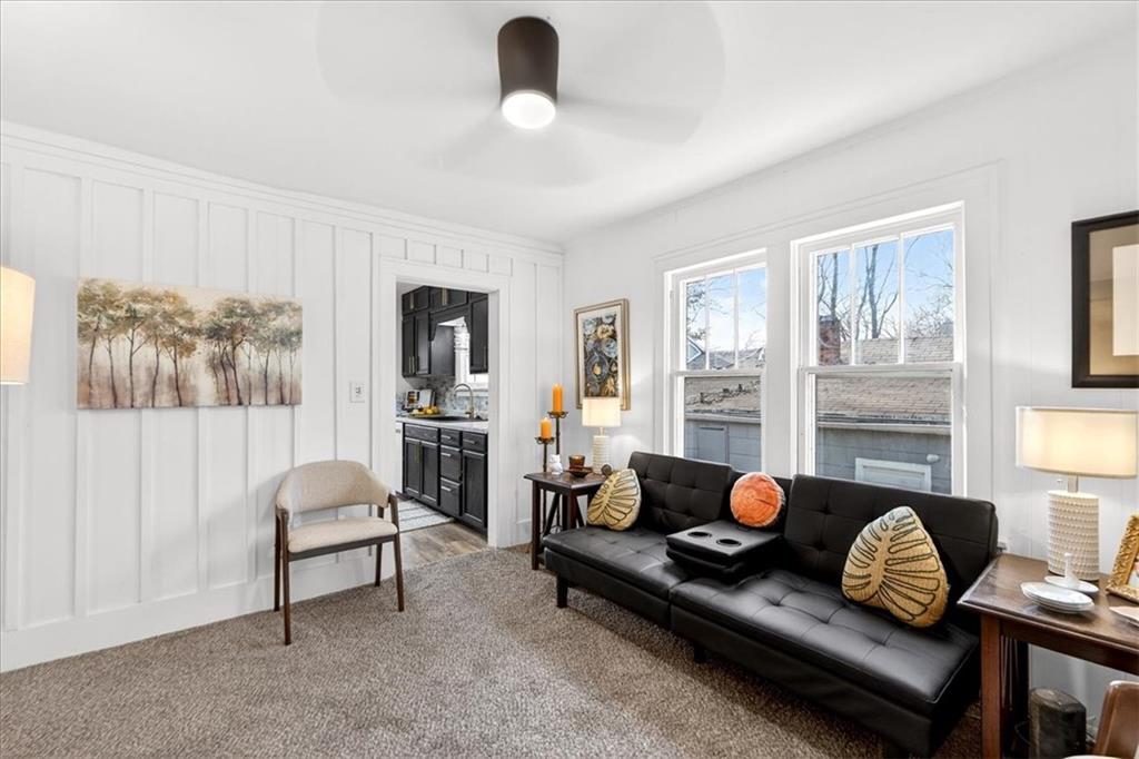 This renovated 3-bedroom home with a finished attic bonus room is bright, open, and ready for its next owner. The main living area features a new electric fireplace with built-ins, new flooring, and upgraded storm windows that bring in great natural light. The kitchen has been fully updated with new cabinets, sink, fixtures, waterproof flooring, and all-new appliances that stay with the home. The bathroom includes a new tile floor, vanity, and toilet. Additional updates include a new high-efficiency HVAC system, professionally cleaned air duct vents, new hot water tank, new gutters, new breakers, outlets, light fixtures, and a new back deck. New carpet runs throughout the home, and a dedicated laundry area has been added in the basement. A new back door and storm door, exterior paint, gutters, and gravel driveway complete the exterior improvements. This home also qualifies for 0% down payment programs, creating a strong opportunity for buyers. Homes with this level of work and pricing do not last!