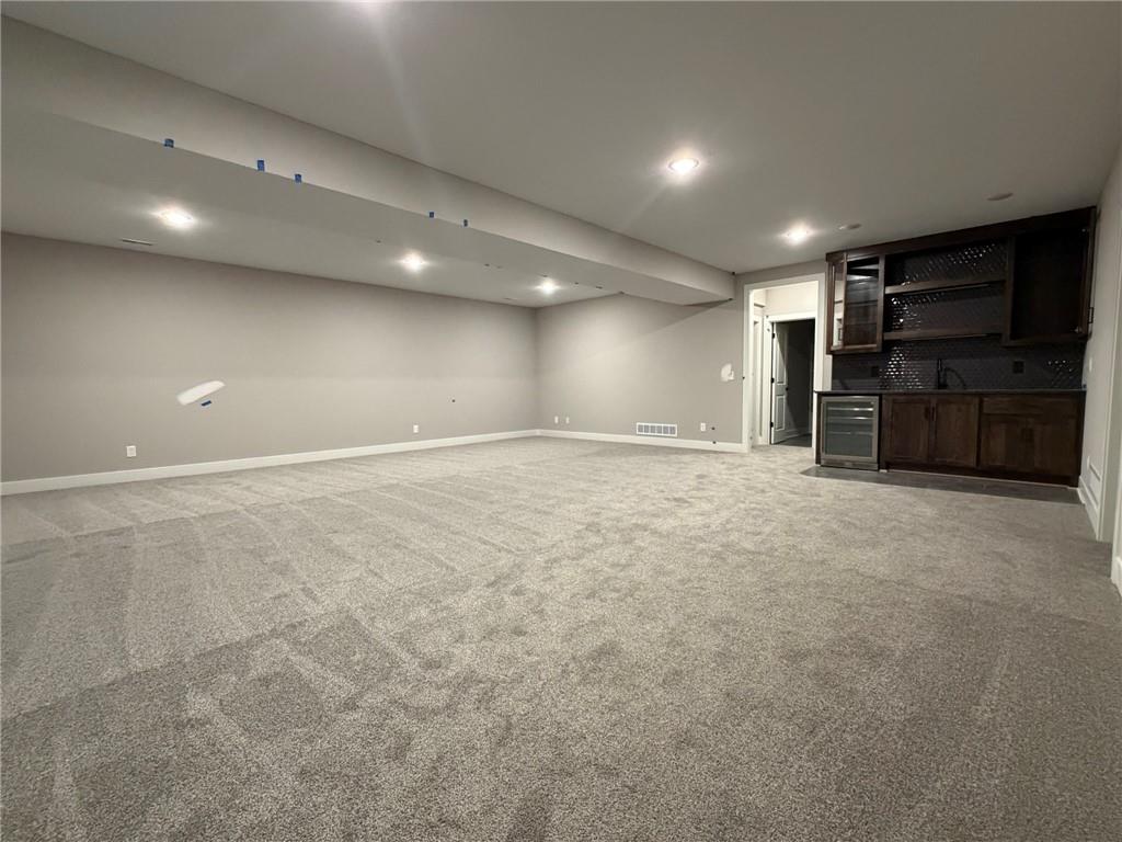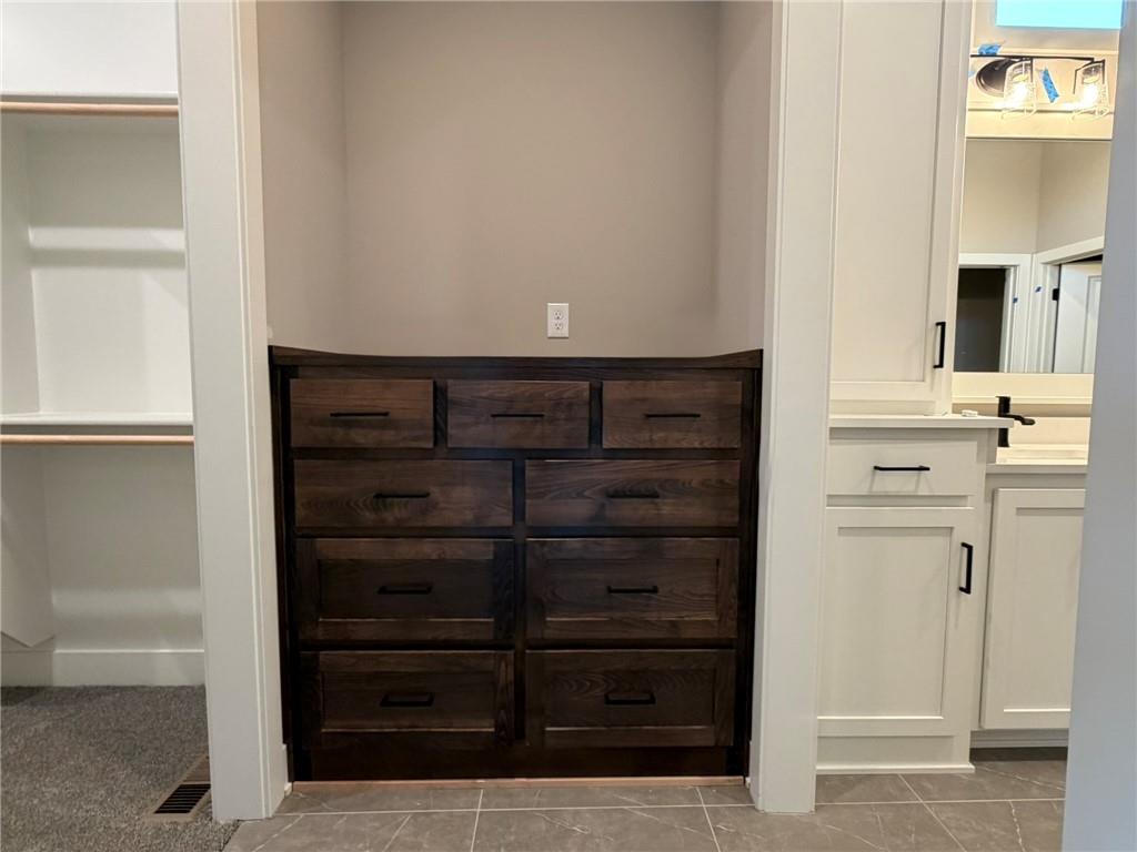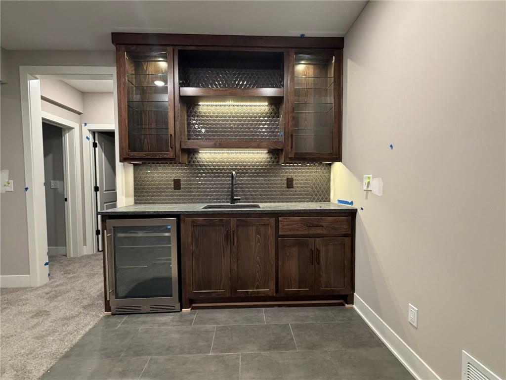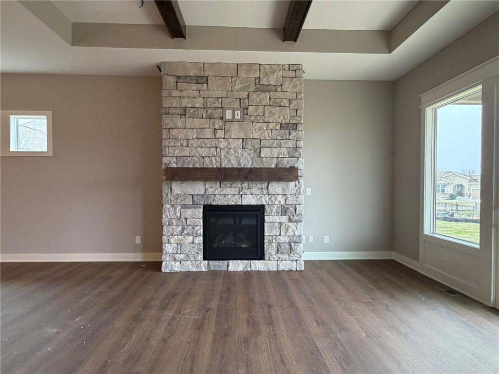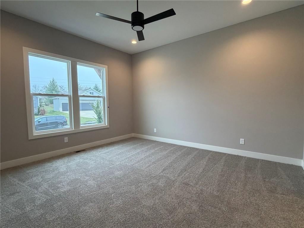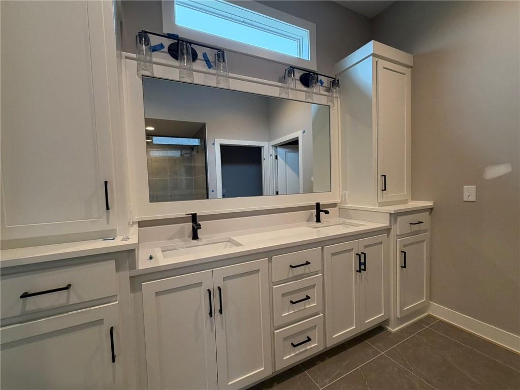 This stunning Sonoma reverse 1.5-story home features two primary suites on the main level, each with its own private ensuite bath. The main primary suite includes a zero-entry shower, an expansive walk-in closet with custom shelving, and a built-in dresser. For added convenience, the laundry room is located on the main level with access from both the primary bathroom and the mudroom. The gorgeous kitchen features GE stainless steel appliances, a deluxe stained wood hood, stained cabinetry with full-extension soft-close drawers and doors, a trash pull-out, quartz countertops, and a 36" gas cooktop. Offering abundant storage and counter space, it opens seamlessly to the dining area and great room, where a stained coffered ceiling creates an inviting gathering space. Ten-foot ceilings further enhance the impressive floor-to-ceiling stone fireplace in the great room. The lower level offers an oversized rec room, a stained wet bar with glass doors, glass shelves, interior, under cabinet and shelf lighting. Two spacious bedrooms, and a full bath. The Sonoma boasts one of the best lower-level layouts for family, perfect for entertaining and offers generous room for storage and flexibility. Additional upgrades include a high-efficiency furnace, upgraded stainless steel GE dishwasher, under-cabinet lighting, low-maintenance Trex deck with aluminum rails, upgraded carpet and lighting, and durable RevWood laminate flooring that is both scratch- and water-resistant. Kensington Farms offers exceptional amenities such as a pool, playground, greenspace, and convenient access to Downtown Lee’s Summit, Summit Fair, shopping, and dining. This home is located in the Maintenance-Provided section of the community. For an additional $160 per month, homeowners receive weekly lawn mowing (front and back), a six-step annual fertilizer program, one yearly grubworm treatment, spring re-mulching, a spring yard clean-up, and snow removal for accumulations of 2" or more.