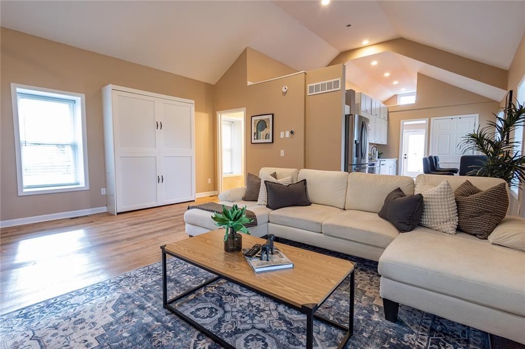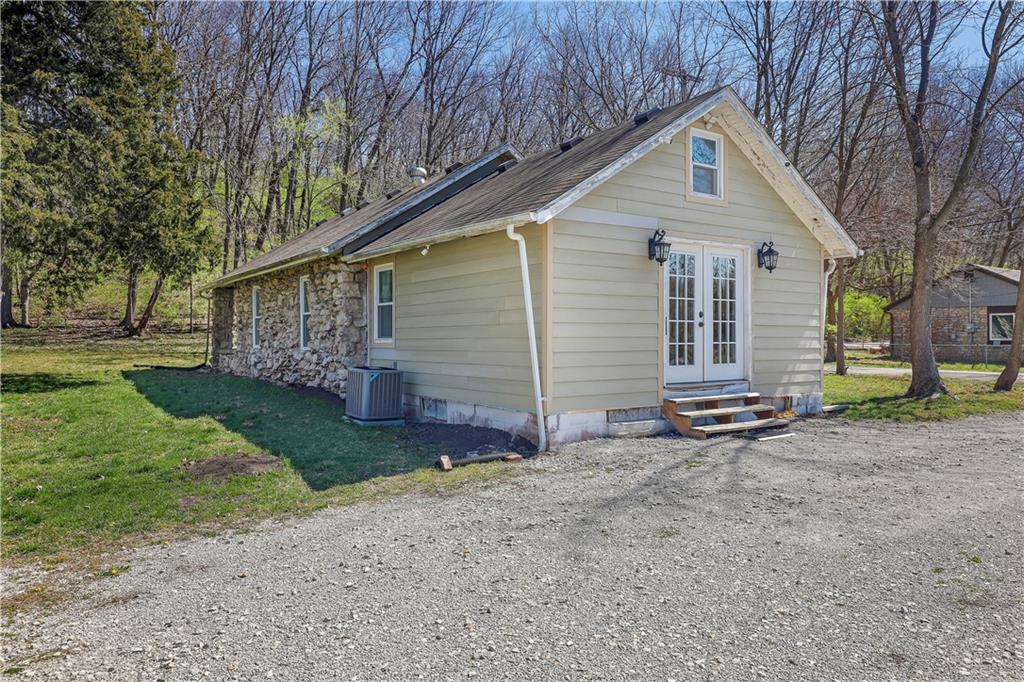 Discover a home you simply don’t see every day — a peaceful Kansas City bungalow offering character, updates, and a rare nearly-acre lot backing to trees. Just minutes from the KC Zoo, Starlight Theatre, Arrowhead Stadium, and major highways, this location makes daily life effortless — whether you’re commuting, catching a show, or heading downtown. Inside, the home welcomes you with new luxury vinyl flooring and an inviting living area that includes a built-in Murphy bed for flexible guest space. A loft tucked above offers additional storage, potential extra sleeping space, or other creative uses — giving you options most homes this size don’t provide. The kitchen shines with quartz countertops, a bar/island, gas range, newer stainless steel appliances, and plenty of room to cook and gather. The bathroom feels like a retreat with a large walk-in shower, double vanities, and in-unit stackable laundry. The bedroom is generously sized and includes a spacious closet and French doors! Outside, you’ll love what makes this home truly special: nearly an acre of land and a covered front porch backing to mature trees, creating uncommon privacy and room to enjoy the outdoors! Newer HVAC, Water Heater, and Appliances, as well as keyless entry, smart thermostat, and Wi-Fi camera system add to everyday ease and peace of mind. Updated, unique, and unexpectedly private — this home delivers more than meets the eye. Seller is Owner/Agent