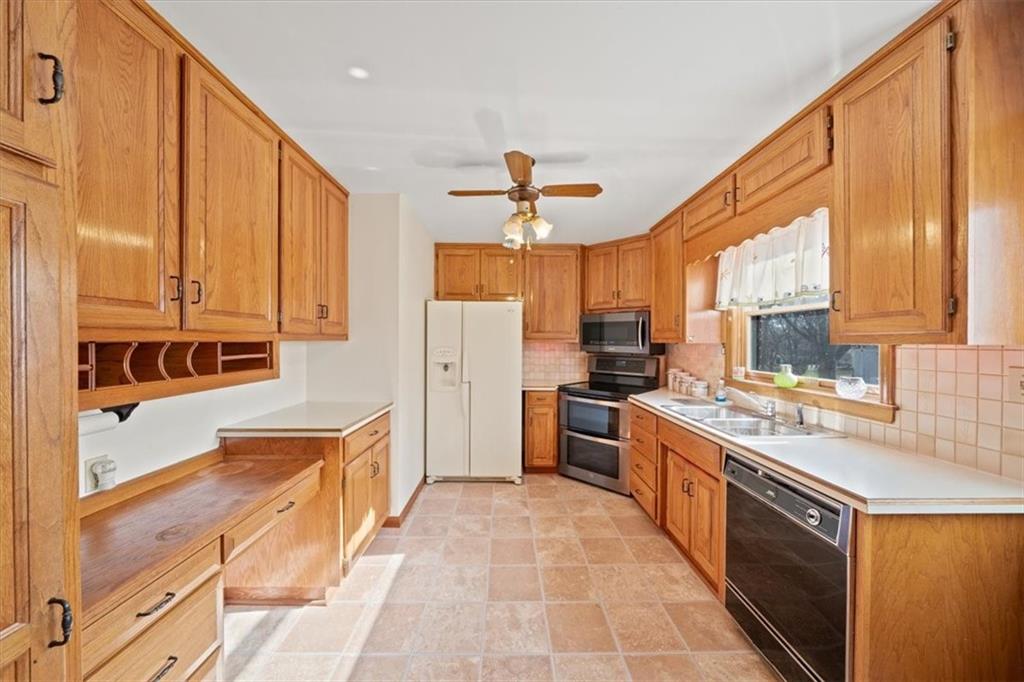 Welcome to this classic Raytown ranch, offering easy one-level living and a functional layout filled with natural light. Step inside from the covered front porch and into a spacious living room highlighted by a window wall that brightens the entire main floor. The living room flows seamlessly into the dining area and kitchen, where you’ll find warm wood cabinetry and backyard access. Original hardwood floors run throughout the main level, adding character and charm to the home’s timeless design. Two bedrooms share a full hall bath, creating an efficient and practical floor plan. The finished lower level area expands your living space and serves a variety of needs—whether you envision a rec room, media lounge, home office, or hobby area. This level also features a convenient entry through the attached two-car garage. Outside, a large fenced-in backyard provides plenty of room for play, gardening, or pets, while a secondary driveway offers valuable flexibility for storing a boat, trailer, or additional vehicles. Located just minutes from restaurants, grocery stores, and everyday conveniences, this home also offers enviable access to major highways—making commutes simple and stress-free. A wonderful opportunity to enjoy classic ranch living in a central Raytown location!