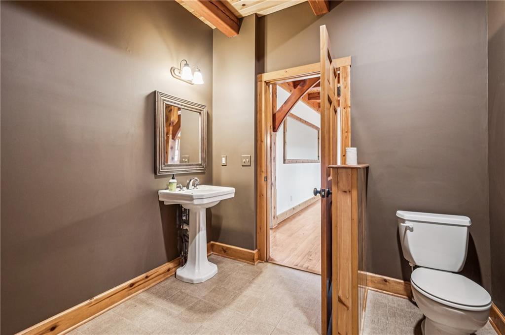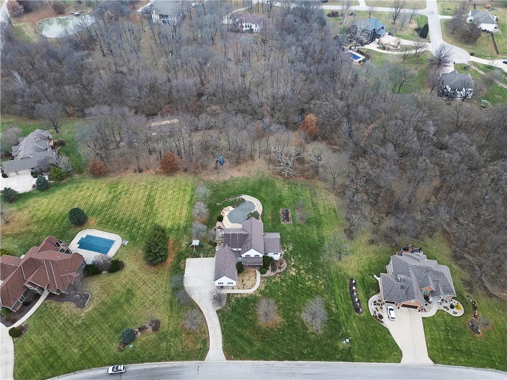 This exceptional one-of-a-kind custom timber-frame home seamlessly blends rustic character with modern luxury, set on 1.84 picturesque acres in Holmes Creek Hills North A welcoming front porch, perfect for rocking chairs invites you inside. Entertain with ease in the formal dining room, then take in the show-stopping living room featuring soaring 22-foot vaulted ceilings, exposed beams, a striking stone fireplace, and a dramatic wall of high-end angular windows overlooking the saltwater pool and wooded back yard. Hardwood floors extend throughout this open-concept main level into a gourmet kitchen with walk-in pantry. The main-level owner's suite offers a private retreat with heated floors, a tiled walk-in shower and freestanding soaking tub. Upstairs, three generously sized bedrooms offer provide flexible living options, including a nonconforming loft-style space ideal for a home office or study. The two-tier, finished walk-out basement is an entertainer's dream. Media/family room with 104" TV is the perfect area to cozy up for movies. The lower level hosts a second fireplace and full bar creating the perfect space for gatherings. Outdoors, unwind in the evenings around the firepit and enjoy the peaceful setting this property offers.
