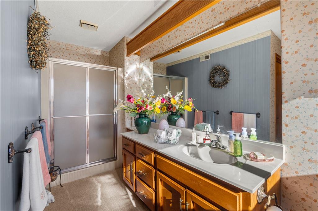 Welcome home to this beautiful and spacious 1.5 story home, perfectly situated on a generous 1.42 acres m/l at the edge of town, offering the tranquility of country living while remaining outside of city limits. This thoughtfully designed home features 3 bedrooms and 3.5 bathrooms, including a convenient main-level bedroom and full bath. The main level is anchored by a warm living room featuring a magnificent stone fireplace, and offers distinct spaces for dining: a bright eat-in kitchen and a sophisticated formal dining room. Upstairs, the versatile loft area provides an additional flexible space for an office or media room, while the full basement offers enormous potential for future finishing or ample storage. Complete with a 3-car attached garage, this property combines curb appeal, functional living spaces, and room to breathe.