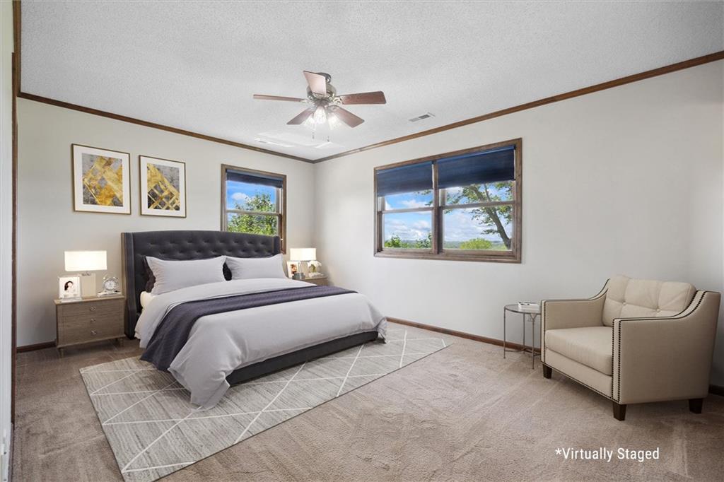Horizon Ridge Place is a well-cared for home set on approximately 7.20 acres of high-elevation ground, capturing big-sky views in nearly every direction. The property has been pre-inspected, with improvements completed for buyer peace of mind. Inside, you will find a comfortable layout with 3 conforming bedrooms and 3 bathrooms, plus a finished basement that includes an additional non-conforming bedroom and extra living or recreation space. A new wood-burning stove in the basement adds both warmth and character, creating a cozy gathering spot on cooler days. The main floor connects easily to outdoor decks where you can watch sunrises, sunsets, and distant city lights across surrounding brome and pasture. The home includes an attached 1-car garage, and the outbuilding with loft offers additional parking, workshop, and storage options ideal for hobbies, equipment, or future projects. Hard-surfaced access just off US Highway 40 places you minutes from Topeka, with direct routes to I-70 and a straightforward drive toward Lawrence, while still enjoying a quiet rural setting near Tecumseh. This all-electric home is serviced by the rural water district, and AT&T fiber is in place, making this a rare utility combination for country living. Simple protective covenants govern the surrounding Horizon Ridge Estates acreage. Buyers of Horizon Ridge Place will have the first opportunity to purchase the adjacent Horizon Ridge Estates Tract 8, making it possible to expand the homestead footprint if desired.