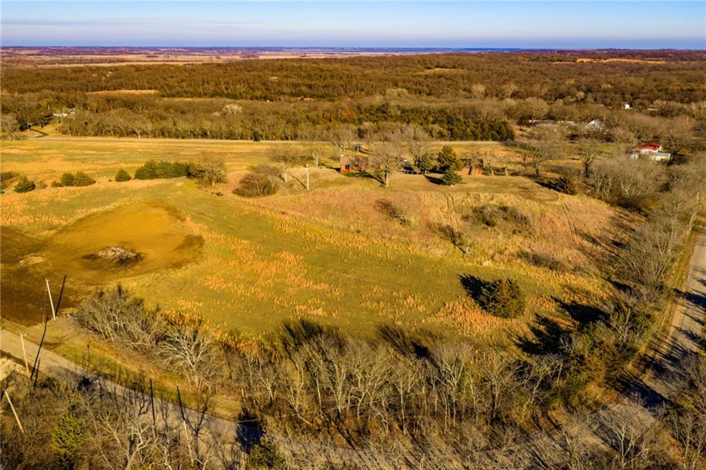 Horizon Ridge Estates Tract 6 is a standout corner tract with 4.54 acres at SE 10th Street and Stanley Road, offering both presence and practical access. Elevated ground and sloping topography make this an ideal site for a walkout basement, lower-level patio, or terraced outdoor spaces that take advantage of the natural grade. A row of trees along the road adds privacy and a green buffer from this lightly traveled, hard-surfaced intersection. The corner position allows for potential driveway access from either SE 10th or Stanley, giving you flexibility for garage placement and traffic flow. Located just off US Highway 40, you are minutes from Topeka, with quick access to I-70 and an easy drive toward Lawrence, yet the setting retains a peaceful, rural character near Tecumseh. Simple protective covenants are in place to maintain an attractive estate environment. With rural water meters and utilities available, Tract 6 is an exceptional opportunity for a signature home that really uses the land.