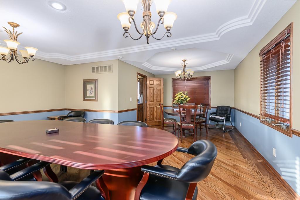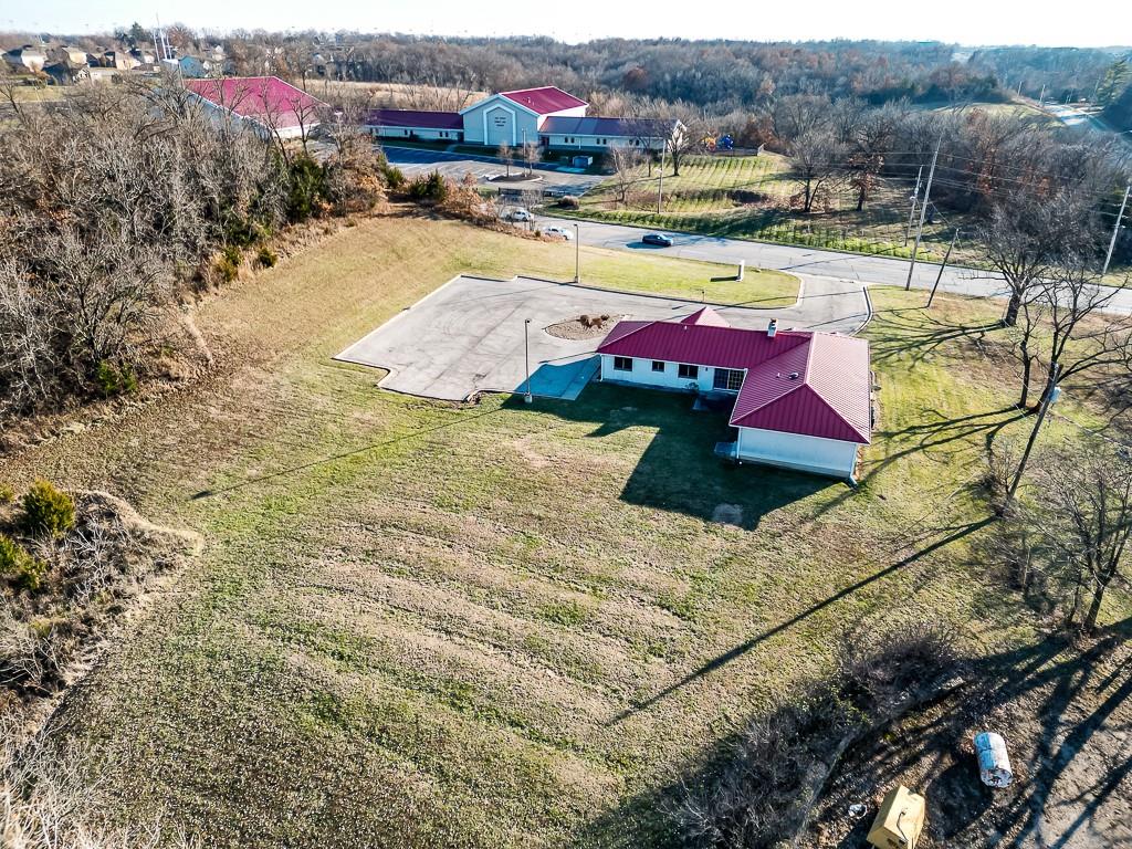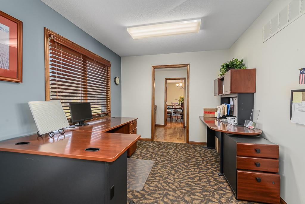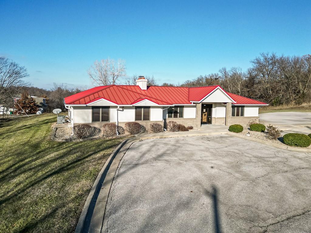 2536 SQ FT OFFICE WITH MULTIPLE WORKSPACES AND GREAT LOCATION! This well-kept commercial building offers 5 private offices, a welcoming reception area with a brick fireplace, a conference room with hardwood floors, a kitchen, and three half baths with accessible features. A partial basement gives you extra storage space, and the outdoor patio adds room for breaks or informal meetings. The building is built to last with a metal roof, stucco and brick siding, and new gutters. A large parking lot provides plenty of room for guests and staff, and the prominent street-front signage makes your business easy to find. With flexible space that works well for many professional uses, this property is move-in ready and set up for success.
