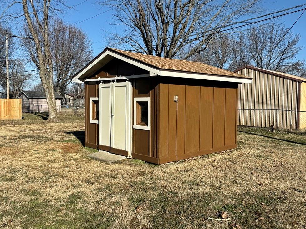 Southside Home for Sale in El Dorado Springs, MO. Schedule a showing soon to see this 3 bedroom, 1 bathroom starter home on the southside of El Dorado Springs, MO. This 1,054 sq ft home offers low-maintenance, charming curb appeal with the vinyl sided home with shutter accents. The home features a large living room. Then kitchen/dining combo offers a small bar for dining or additional countertop space as well as a pantry closet for additional storage. An electric range and vent hood are sold with the home. The window over the kitchen sink gives a nice view of the open backyard that features a 9’x18’ concrete patio perfect for shaded summer evenings. The home features a newer HVAC & water heater. The one car attached garage gives convenient parking and the tool shed out back provides great outdoor storage. Nice condition homes in this price range are difficult to find, so call soon!