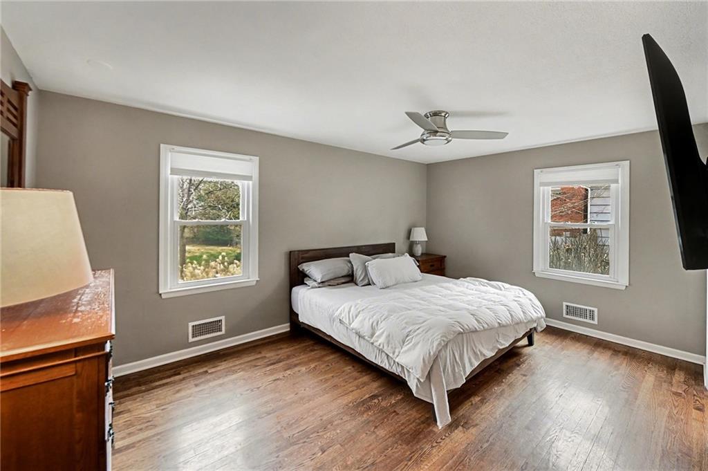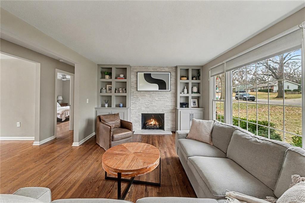 Welcome to this gorgeous Prairie Fields 1.5-story home featuring 3 bedrooms and 3.5 baths. This home sits on a large, nearly half acre lot on a beautiful tree-lined street. A covered front porch welcomes you to gleaming hardwood floors and fresh, open spaces. A large living room with custom built-ins, is centered around a fireplace and flows beautifully into both the kitchen and dining room. A fully-renovated gourmet kitchen complete with tons of custom cabinets, quartz countertops, professional KitchenAid stainless appliances, stylish backsplash, breakfast bar seating and designer touches is the heart of the home. The dining room is filled with natural light and flows beautifully to the deck. The main-level primary suite includes a large double vanity, spacious walk-in closet, and full-size washer and dryer for main-level laundry. Upstairs, you’ll find two generous bedrooms connected by a beautifully designed shared bath, along with a versatile loft area that works for office, play, gym or den space. The finished hard-to-find-walkout basement adds valuable living space with full bath, perfect for guests, a rec room, or a home office. A future nonconforming bedroom is framed and ready to go in the basement or add a dormer window to the upstairs loft for an additional two bedrooms if needed! Backyard is an oasis. A park-like setting for entertaining, gardening or play. Fully fenced. True two car garage and flat driveway. Situated in the highly sought after Shawnee Mission school district, close to the Prairie Village shops and downtown Overland Park you have your pick of restaurants, shops, parks and entertainment. This one checks all the boxes! An absolute must see!