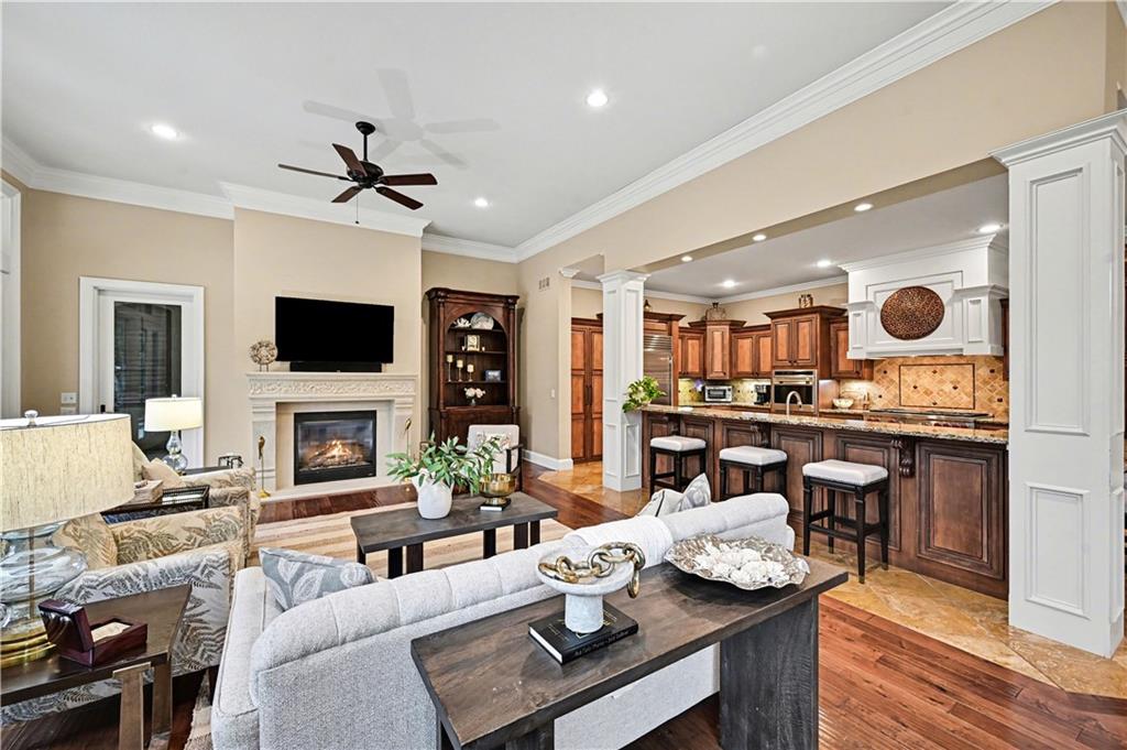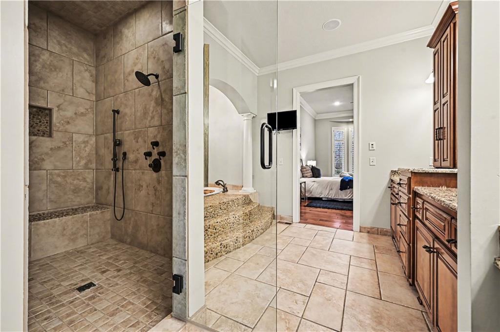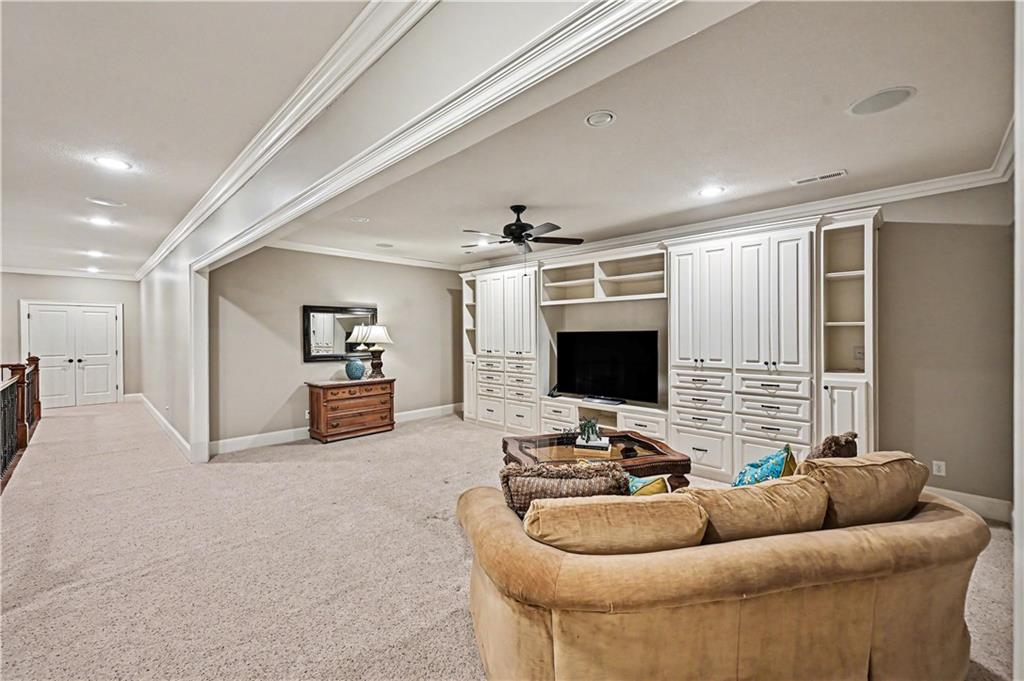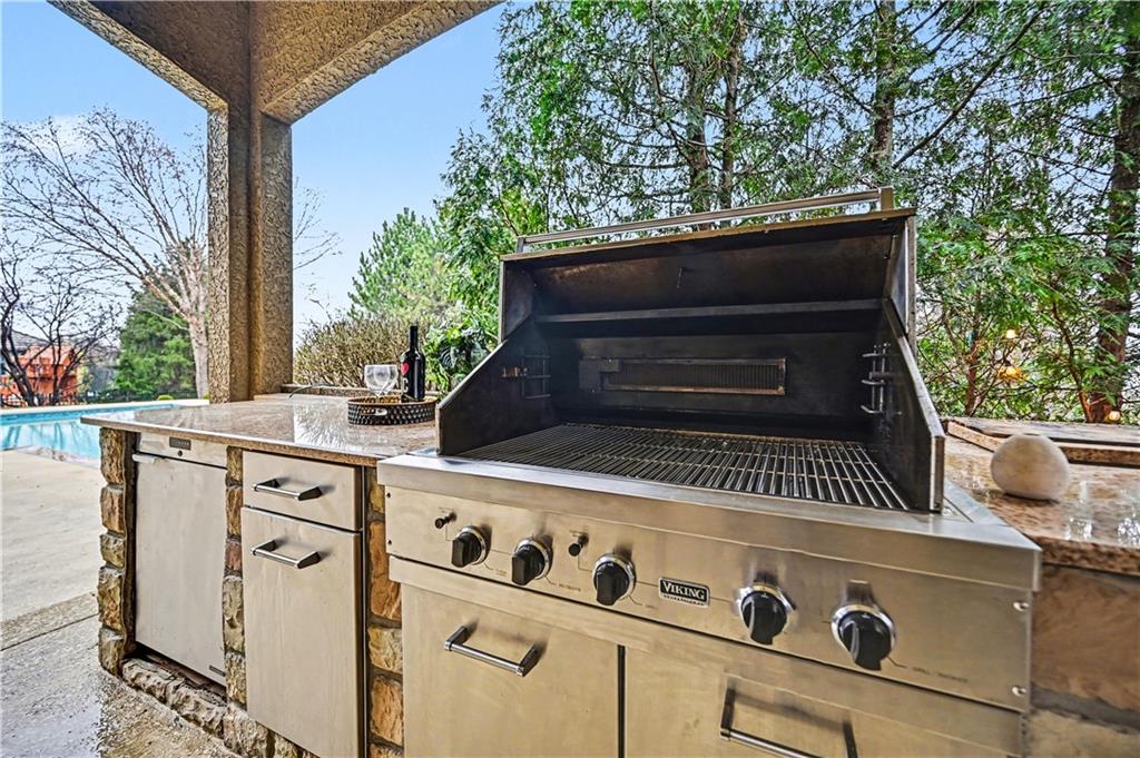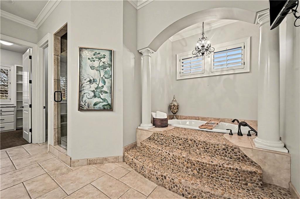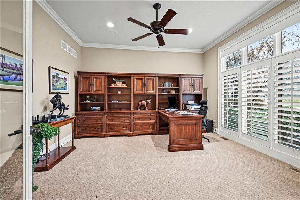Exquisite 5 bedroom estate home in the sought-after golf course community of Falcon Ridge Estates! Spacious and rare 1.5-story with two main-floor primary suites, two laundry rooms, a saltwater pool, and 5,000+ sq ft. From the side-entry garage to the double front doors and grand two-story entry, you’ll want to call this house HOME! Off the entry is an office with French doors, leading into the spacious open main floor-perfect for entertaining or large families. The highlight is the true chef’s kitchen with 3 WOLF ovens, a 6-burner cooktop with griddle, plus a convection/multi-function oven. Additional features include an ice maker, 2 dishwashers, custom cabinetry, 2 lazy Susans, a large walk-in pantry, SUB-ZERO refrigerator, and an L-shaped granite island with seating for 6+ barstools. The kitchen and dining areas open to the family room with a gas fireplace, floor-to-ceiling windows, and French doors leading to the patio and pool. Enjoy the outdoor kitchen with Viking grill, cooktop, and mini fridge under a covered lanai with wood-burning fireplace and TV area. Primary suite #1 features hardwood floors, sitting area, and spa-like bath with double sinks, vanity, spa tub, TV, walk-in shower with multiple heads and bench, plus an extra-large walk-in closet with second laundry. The second primary suite is also on the main floor with a free standing bathtub, walk-in shower, walk-in closet and lanai access. Also on the main are an office nook, LG laundry rm, 1/2 bath & mudroom. Upstairs offers three additional bedrooms-each w/private bath & lg walk-in closet plus a spacious family room. Granite counters in all baths, plantation shutters throughout, hardwood & tile flooring, iron spindles, beautiful molding details, wide staircases+more. Over 3,000 sqft in the lower level ready to customize! Neighborhood amenities include two pools, pickleball, tennis, sand volleyball, & basketball. Golf optional. Minutes to trails, Lake Lenexa, downtown Lenexa, restaurants, & highways.