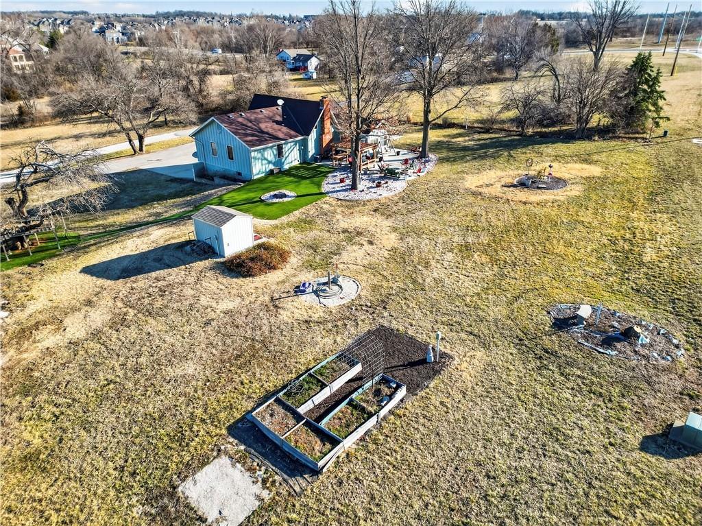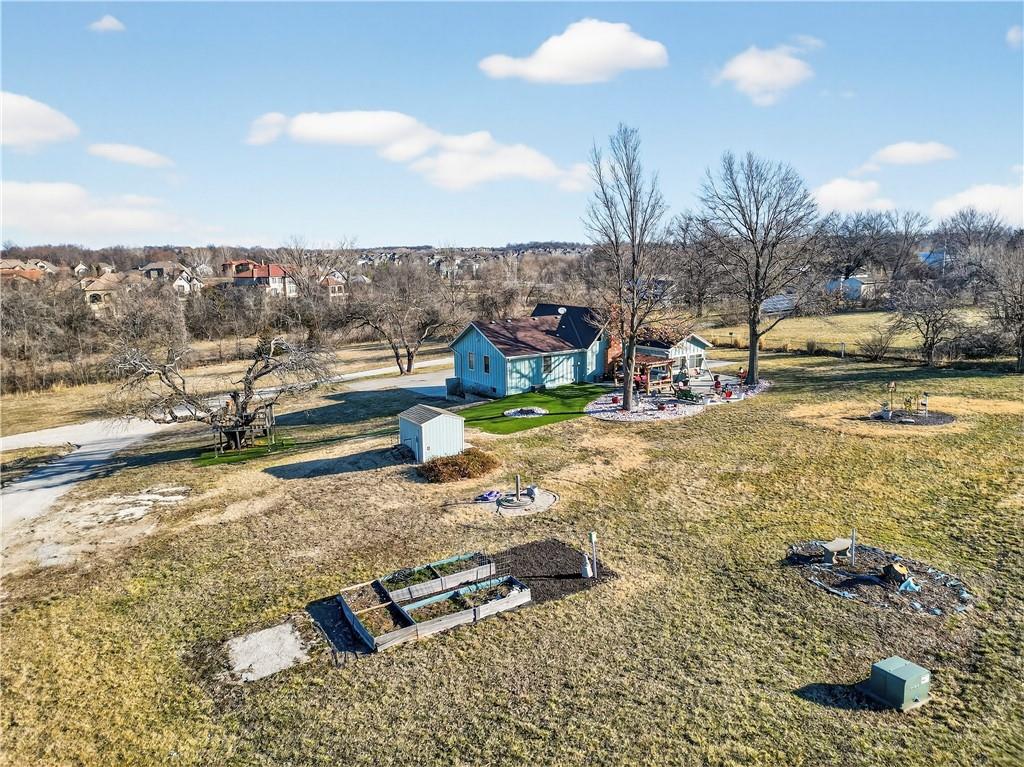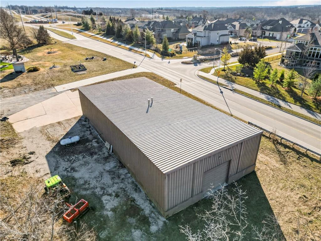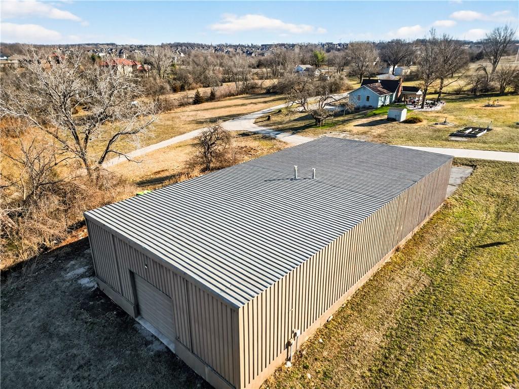 Rare Opportunity on 3.66 Acres in South Overland Park! This unique property offers incredible flexibility with a raised ranch home and an impressive outbuilding—both located within city limits and with no HOA. The home sits on a 1.05-acre lot and features a light, open interior with vaulted ceilings and spacious living areas. The kitchen offers granite countertops, subway tile backsplash, and ample cabinetry, opening to the main living space for easy everyday living and entertaining. A bright sunroom with vaulted ceilings and a wall of windows overlooks the front yard and provides access to the side driveway and patio area with gazebo and partial turf yard. The lower level offers additional living space ideal for guests, hobbies, or storage. The true standout feature of the property is the massive 4,692 sq ft outbuilding situated on its own 2.61-acre parcel. The building includes propane heaters, electrical panel, water source, a half bath, and a 464 sq ft mezzanine that can function as office space or additional storage. Both parcels—totaling 3.66 acres—are included in the sale and share a single access point. Currently zoned residential, this setup creates endless possibilities: operate a home-based business, create exceptional workshop or hobby space, store vehicles and equipment, or build a luxury estate. Located in a rapidly growing area of Overland Park near shopping, dining, parks, and major highway access, this property also sits adjacent to the luxury homes of Garnett Hill—creating a rare opportunity to own acreage in a premier location without HOA restrictions.
