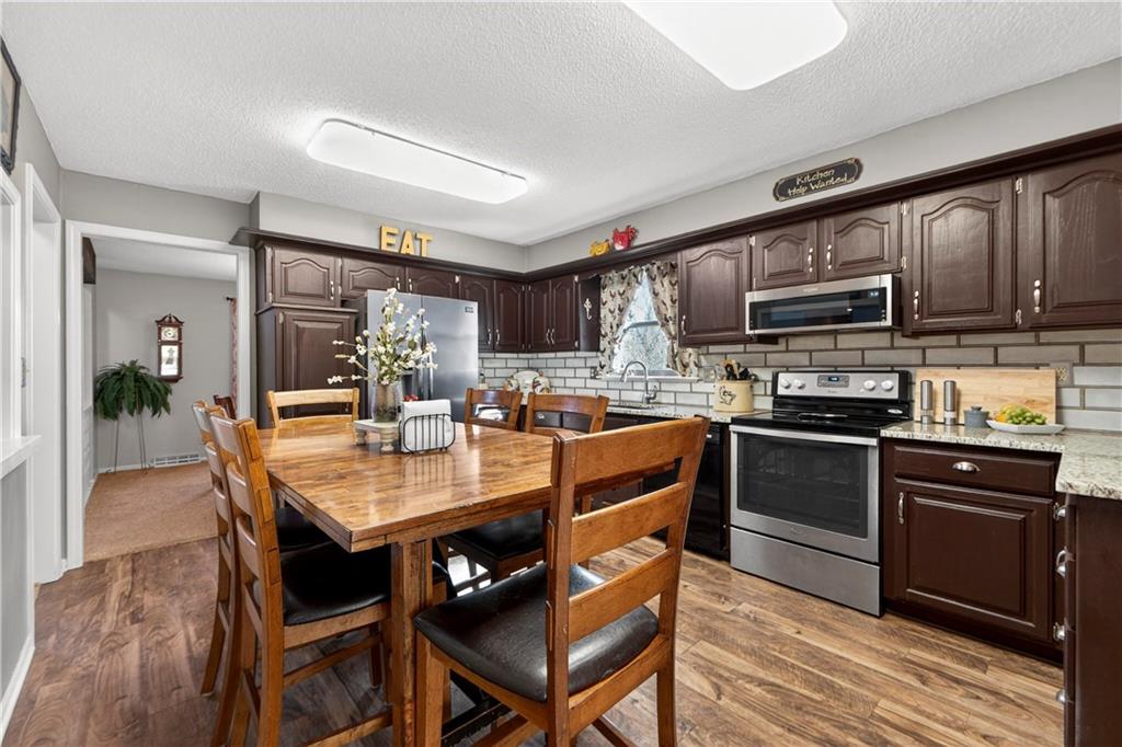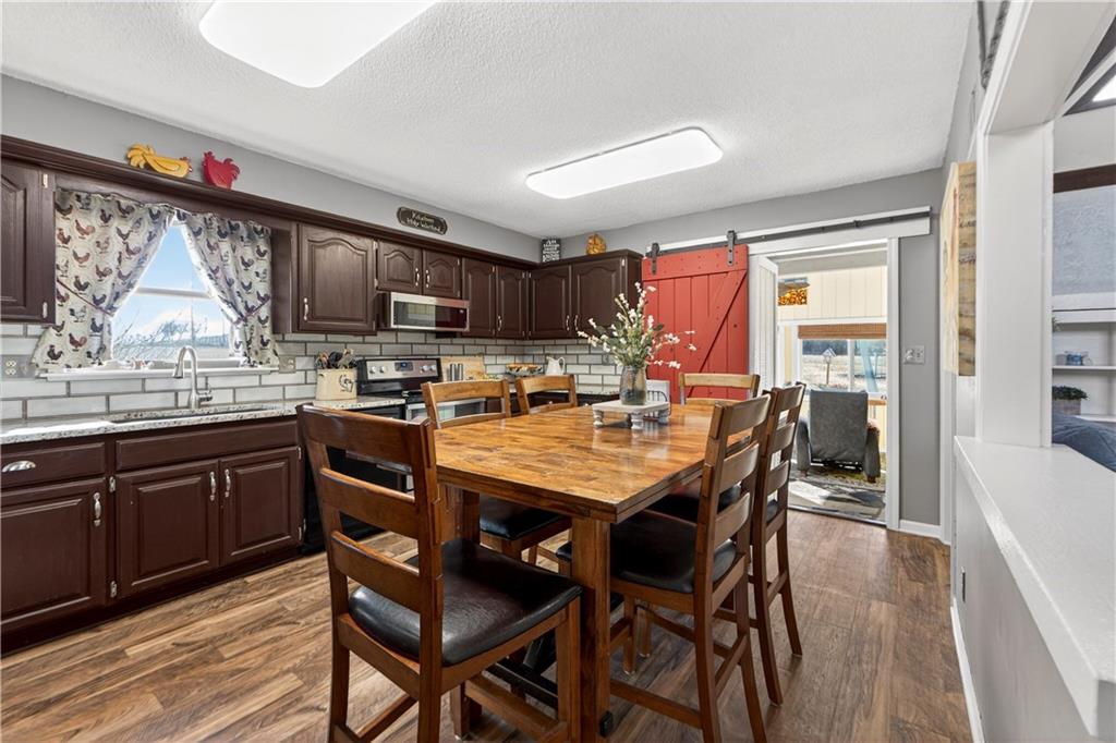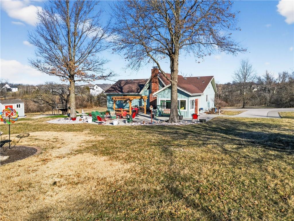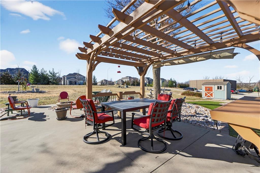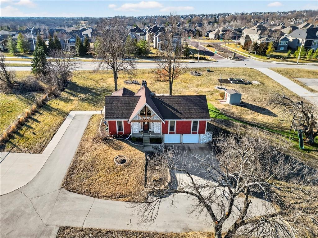 Rare Opportunity on 3.66 Acres in South Overland Park! This unique property offers incredible flexibility with a raised ranch home and an impressive outbuilding—both located within city limits and with no HOA. The home sits on a 1.05-acre lot and features a light, open interior with vaulted ceilings and spacious living areas. The kitchen offers granite countertops, subway tile backsplash, and ample cabinetry, opening to the main living space for easy everyday living and entertaining. A bright sunroom with vaulted ceilings and a wall of windows overlooks the front yard and provides access to the side driveway and patio area with gazebo and partial turf yard. The lower level offers additional living space ideal for guests, hobbies, or storage. The true standout feature of the property is the massive 4,692 sq ft outbuilding situated on its own 2.61-acre parcel. The building includes propane heaters, electrical panel, water source, a half bath, and a 464 sq ft mezzanine that can function as office space or additional storage. Both parcels—totaling 3.66 acres—are included in the sale and share a single access point. Currently zoned residential, this setup creates endless possibilities: operate a home-based business, create exceptional workshop or hobby space, store vehicles and equipment, or build a luxury estate. Located in a rapidly growing area of Overland Park near shopping, dining, parks, and major highway access, this property also sits adjacent to the luxury homes of Garnett Hill—creating a rare opportunity to own acreage in a premier location without HOA restrictions.