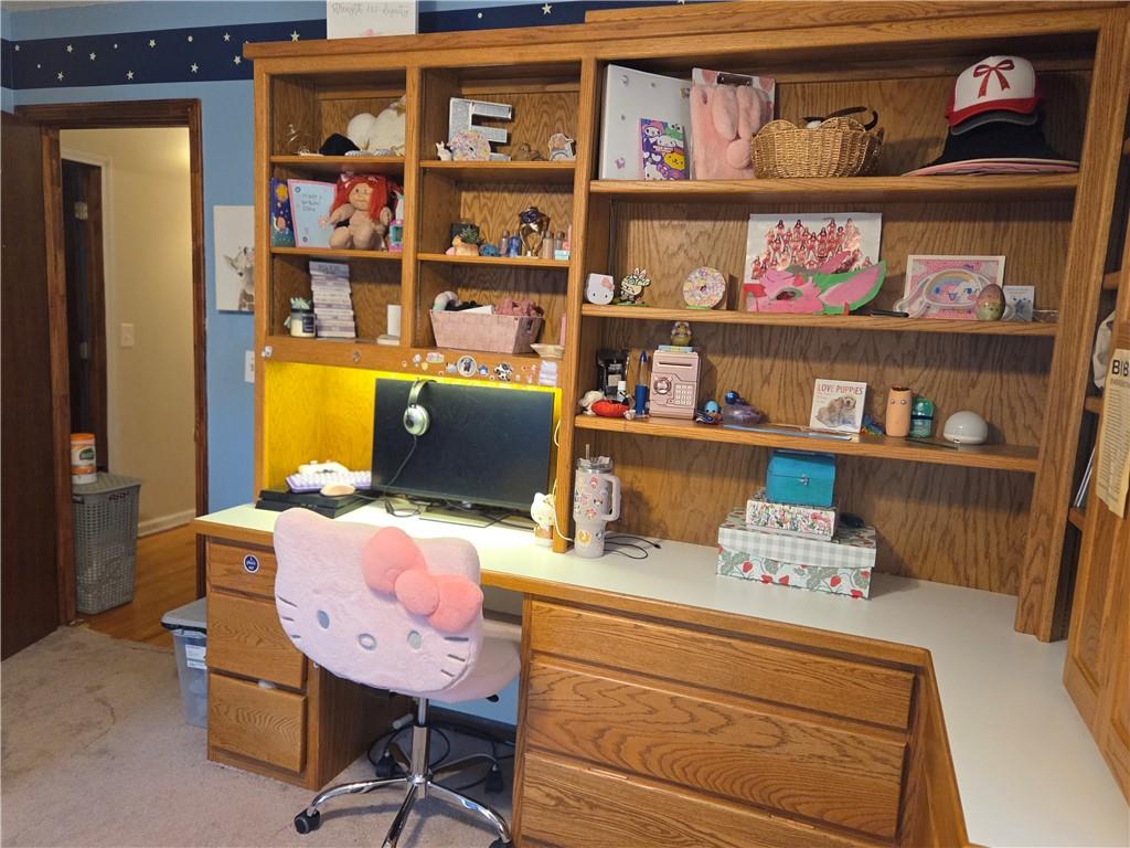 Very Nice Ranch with open main- level. Formal dining room & Kitchen Great for holiday Guest. Allows you to be part of the family, while entertaining. Sellers are aware of pulled carpet area and are allowing a $ 8,000 allowance for you. The basement is finished with a bar nook area, plenty of storage and 3/4 bathroom with adjoining laundry room. Roof appx 6 yrs old. 3 Season sunroom that walks out to large brick patio area. Both Fireplaces are masonry. Oven/electric Range, New Dec 2025. Fridge does not stay. Newer thermal windows installed by previous owner, very nice. Lots of off-street parking and huge back yard, neighbors have fence and would be easy to finish fencing if needed. Yard has room to add a pool.