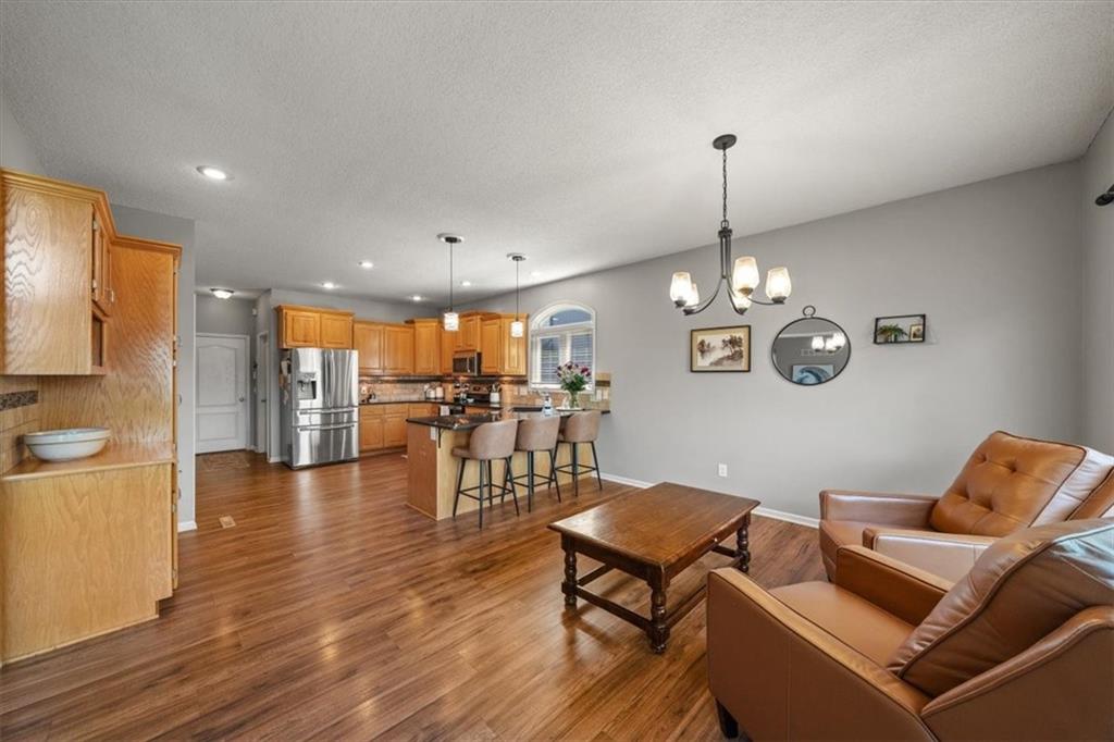 This stunning Reverse 1.5 Story home has been thoughtfully updated and is ready for its new owner. Fresh interior paint, a remodeled primary bath, and luxury vinyl plank flooring in the kitchen, dining, and living areas give the home a modern feel. Brand-new carpet runs throughout, and recent upgrades include a newer A/C unit, dishwasher, microwave, range, stair carpet, hot water heater, and updated lighting. The spacious primary suite features a generous walk-in closet, and the pride of ownership shines throughout every detail of this well-maintained home. Perfect for entertaining, the backyard offers an upper-level deck and a spacious lower-level patio—ideal for relaxing or hosting gatherings. The lower level also includes an oversized door leading to a large storage room, providing plenty of space and potential for future finish. Located in the desirable Lakes at Oakmont subdivision within the highly rated Platte County R-III School District, residents enjoy access to three scenic lakes and walking trails. This home truly has it all—come see it in person to appreciate everything it offers! Owner/Agent