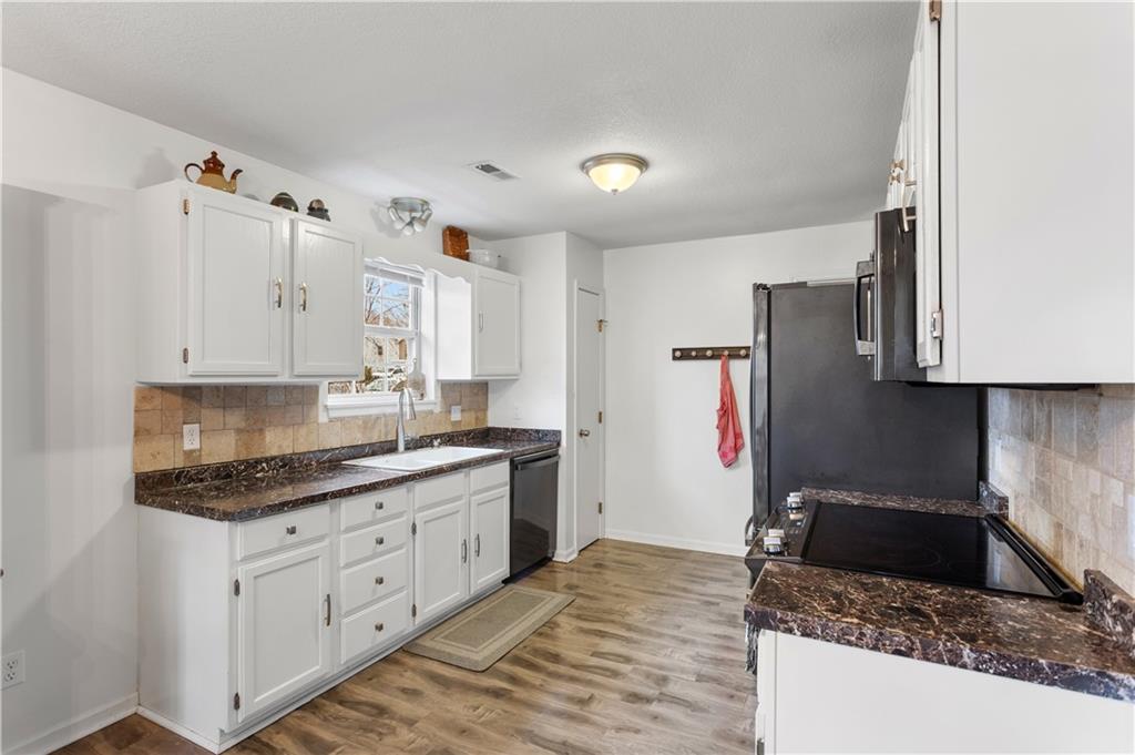Nicely updated ranch home is fully updated throughout so you can move in and enjoy with peace of mind. Living areas feature luxury vinyl plank flooring throughout, vaulted ceiling, woodburning fireplace, fully applianced kitchen with painted cabinets, pantry and a suite of sleek black appliances. Primary suite has jetted tub plus a separate shower, walk-in closet plus a 2nd closet to store it all. Well designed split bedroom layout has Primary suite off kitchen and 2nd & 3rd bedrooms, additional bathroom and laundry off the family room for ultimate privacy. Enjoy entertaining and relaxing outdoors on the covered deck, grow your favorite vegetables in the garden and enjoy picking your own apples and peaches off the fruit trees. Newer Tuff shed offers extra storage for clutter free living. Every detail has been considered here with new energy efficient HVAC, new roof and recently painted exterior so that when you move in, you can relax and enjoy life with everything done!