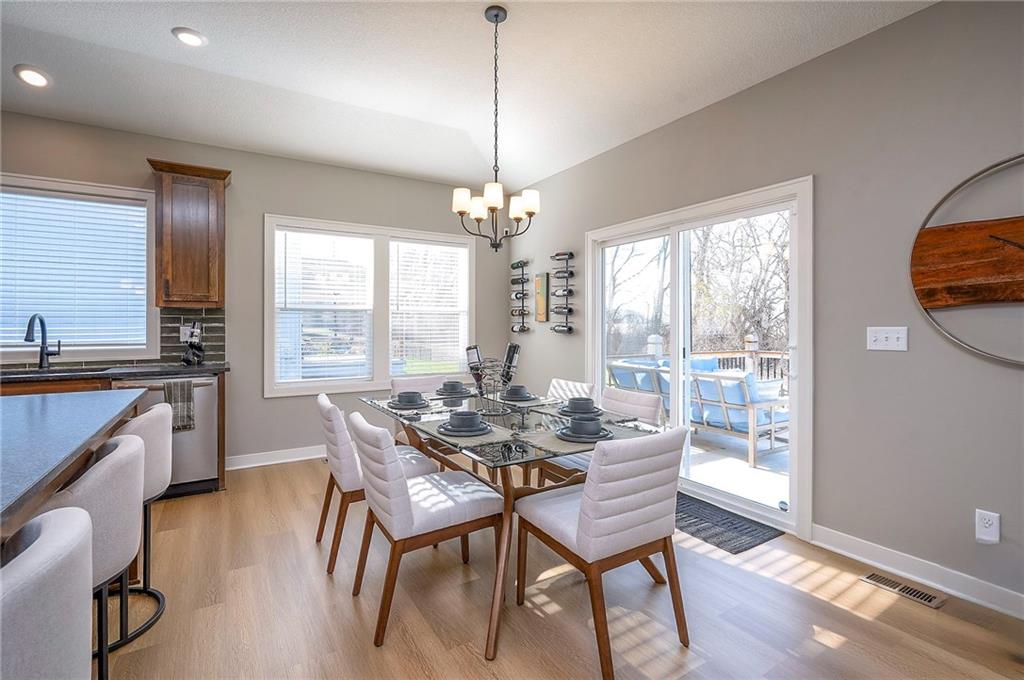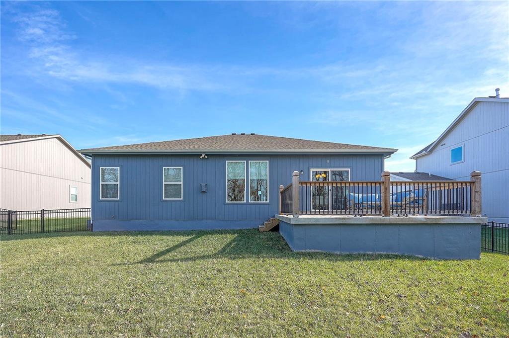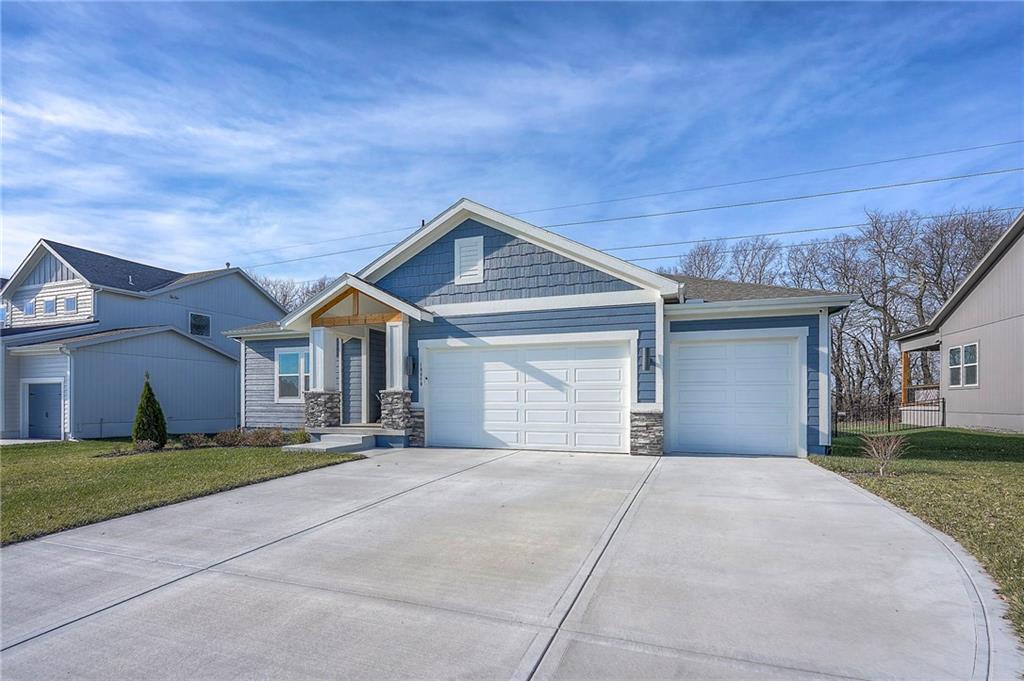 Built in 2024, this Carbondale craftsman ranch plan offers everything you are looking for! The owner built this home with thoughtful details such as an insulated 3 car garage with 8ft doors to fit a full size truck, expanded concrete patio, wrought iron fence, and an upgraded lot backing to trees with no neighbors behind. Wide open layout with lovely stained cabinetry, walk in pantry and green glass backsplash plus a spacious island for all your prep. The eat-in kitchen has seating at the island as well as space for a big table to seat 8+. Main floor laundry and built-in drop zone with organization for shoes and jackets. The primary bedroom suite is a retreat with ceiling details and fan, a bathroom with tiled shower with bench and quartz double vanity. The enormous closet with plentiful hanging space and built-in shelves adjoins the laundry room with built-in folding table or working desk. Enjoy the covered front porch with craftsman wood beams or the level fenced backyard with a view of the trees and pasture. Foxwood Ranch has a community pool, playground and walking trails. The basement has an egress window and is ready for your future finish. Why wait to build? This home is ready now! Full floorplan and walkthrough video available.