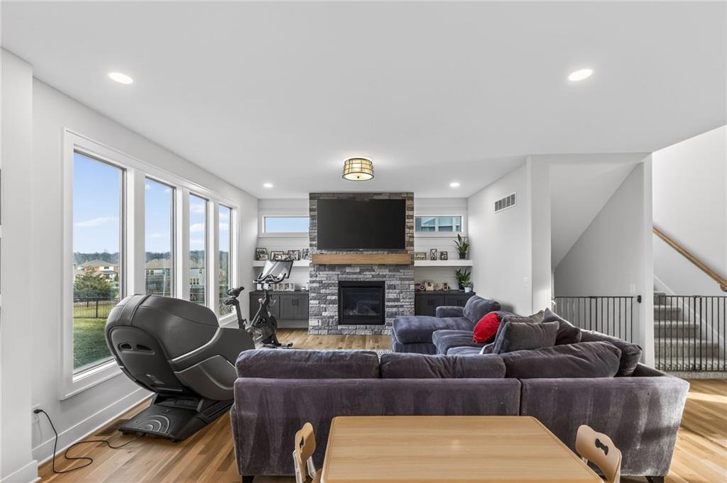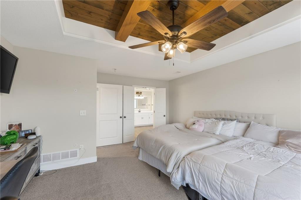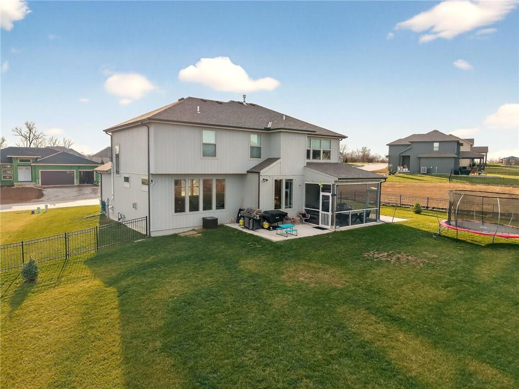 Stunning 4 bedroom, 3 full bath, 2 half bath home built just two years ago in the desirable Woodland Trails subdivision. Thoughtfully designed floor plan with a bathroom connected to every bedroom. Spacious open-concept main level features a large kitchen with oversized island, ample cabinetry, and seamless flow to living and dining areas. Fully finished basement includes a dedicated workout room, private office, and additional living space. Screened-in porch overlooks the fenced backyard with direct access to neighborhood trails leading to the lake behind the home. Community amenities include pool, playground, multiple sport courts, and extensive walking trails. Located in the highly sought-after Lee’s Summit School District. This home offers modern construction, functional design, and exceptional neighborhood amenities.