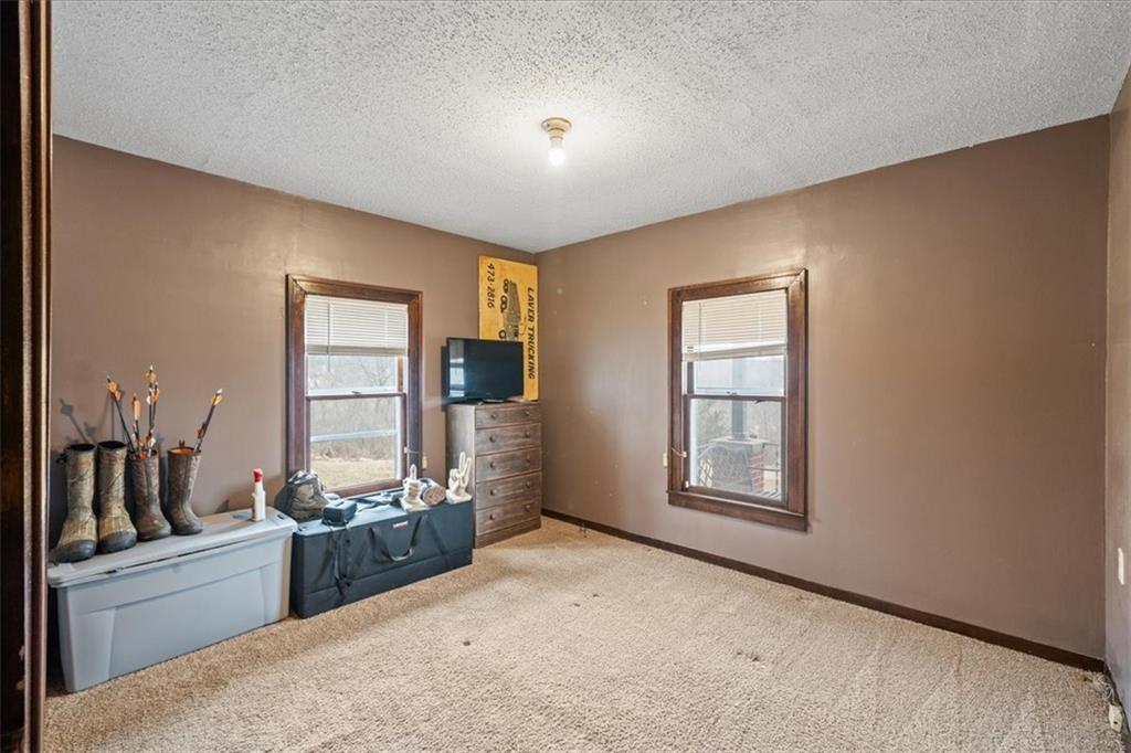 Charming Ranch Farmhouse on Nearly 20 Acres with Creek, Shop & Prime Location The nearly 20 acres offer a beautiful quiet setting with abundant of natural scenery. The land also provides excellent opportunities for turkey and deer hunting. Really nice ranch-style farmhouse offering 2 bedrooms and 1 full bath, perfectly situated on 19.87 rolling acres. The home features include newly updated cabinets and laminate flooring in the kitchen and family room, while the office room is carpeted with stairs to the basement. The land is a standout feature—Turkey Creek runs through the property, providing scenic views and natural beauty. The acreage is fully fenced and ideal for outdoor enthusiasts, with excellent opportunities for turkey and deer hunting. A large shop located next to the home offers endless possibilities for storage, a workshop, equipment, or future projects. Enjoy the best of country living with easy highway access, and The Legends shopping, dining, and entertainment area just a 5-minute drive away. Added bonus: this beautiful property’s value has been positively impacted by the recent announcement of the Kansas City Chiefs’ new stadium planned for Wyandotte County, expected to be just a short 1-2 minute drive from the home. Whether you’re seeking a peaceful country retreat, recreational property, or a small farm setup, this property delivers space, privacy, convenience, and long-term potential.