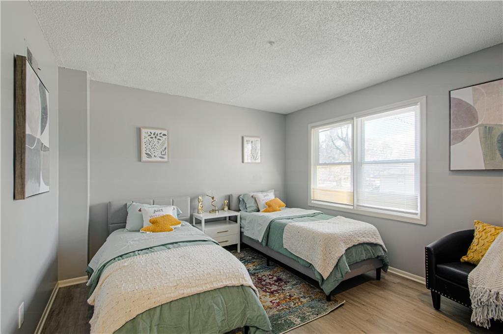 Bright, airy, and move-in ready—this end-unit townhome in South Kansas City checks all the right boxes. The upper level features two spacious bedrooms, including a primary suite with a walk-in closet and beautiful natural light that greets you in the morning. Downstairs, the finished basement adds a third bedroom plus an adjoining flex space—perfect for a rec room, cozy den, gym, or work-from-home office. Fresh paint and thoughtfully selected finishes throughout make this home feel polished, comfortable, and ready for its next owner. Enjoy low-maintenance living with NO HOA fees, plus the added bonus of an end unit with extra privacy and room to spread out. Step outside to your private, fenced in back yard with a concrete patio—ideal for pets, relaxing evenings, and catching those colorful KC sunsets. Two off-street parking spaces are included, along with plenty of nearby parking for guests. With quick highway access, getting anywhere in the metro is easy and stress-free. This is an excellent opportunity to start your homeownership journey in a home that offers space, flexibility, and freedom—all in a convenient city location.