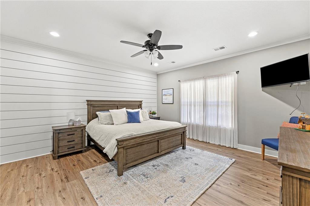 This absolutely stunning, custom-built 2021 barndominium offers the ultimate in secluded luxury across 20+ acres of gorgeous timber and pasture, greeting you with a sprawling covered porch perfect for taking in the abundant local wildlife. The interior showcases the finest craftsmanship through an open-concept layout defined by soaring ceilings, luxury vinyl flooring, and expansive walls of windows that flood the home with natural light. At the heart of the residence sits a gourmet kitchen featuring granite countertops, a massive island, custom cabinetry with pull-out drawers, and a 9x8 walk-in pantry with outlets, all flowing seamlessly into a dining area and a great room anchored by a cozy rock gas fireplace. Practicality meets style in the spacious mudroom, flanked by a dedicated laundry area and a convenient half bath, while the private primary suite serves as a true retreat with its tiled shower, deep soaker tub, and walk-in closet. Two additional generous bedrooms and a full bath provide ample space for family or guests, while a fully concrete 10 x 10 safe room ensures peace of mind. The home's technical specifications are equally impressive, featuring a sophisticated solar energy system supported by a propane gas generator and battery storage for total self-sufficiency. Covered back patio, great for entertaining. Completing this exceptional property is a 50x64, fully insulated, and sheet rocked garage/shop equipped with 200 AMP service, three overhead doors, an exit door, and dedicated attic storage—all situated on a prime piece of land ideal for hunting, farming, or recreation.