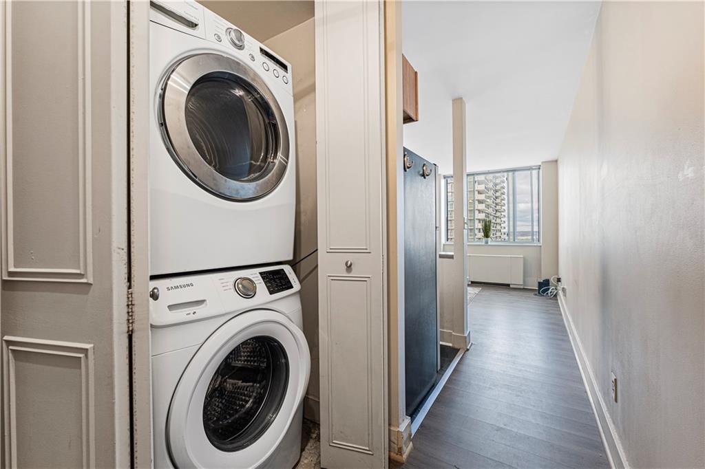 Stylish and move-in ready studio condo in the heart of downtown just moments from the River Market. This sleek space offers luxury vinyl floors, stainless steel appliances, and an in-unit stackable washer and dryer for everyday ease. The open, airy layout fits city living perfectly. Located in The Metropolitan, residents enjoy top-tier amenities including a rooftop pool, fitness center, business center, party room, outdoor patio, and secured parking. A fantastic opportunity for low-maintenance urban living with dining, shopping, and entertainment right outside your door.