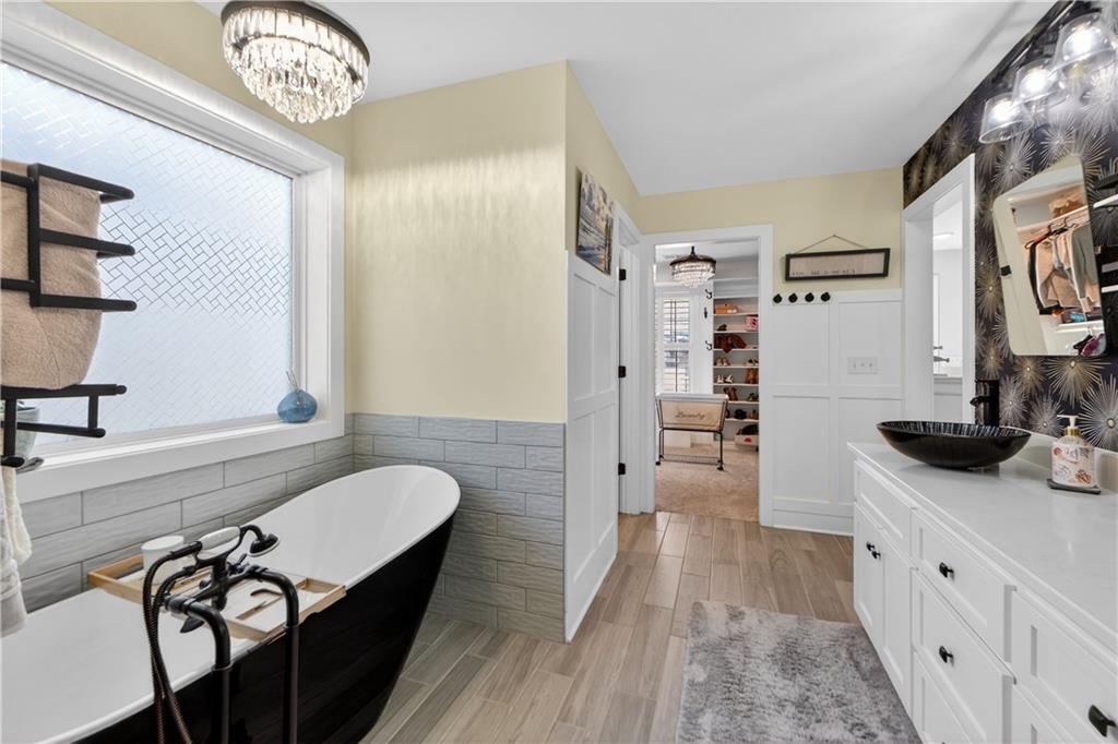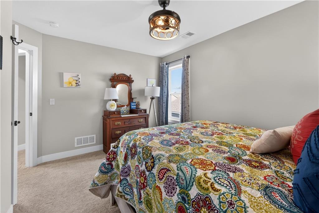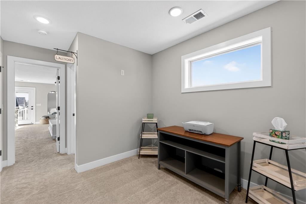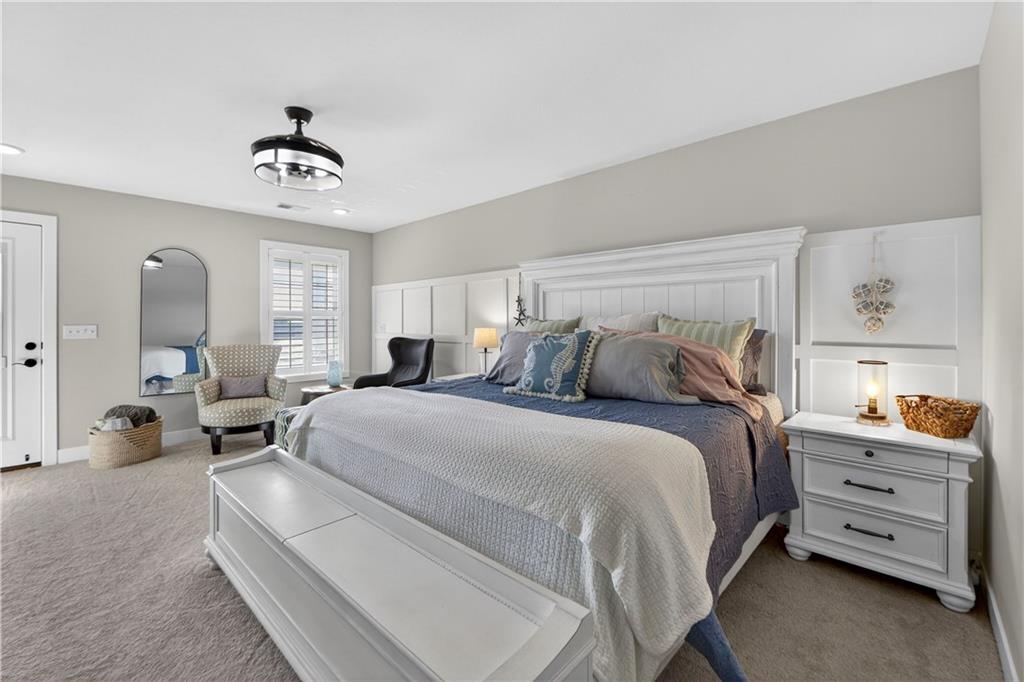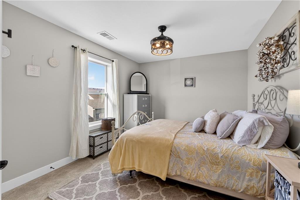 Step inside this thoughtfully upgraded home, where open spaces and abundant natural light highlights designer finishes throughout, creating an atmosphere that feels warm, refined, and intentionally crafted. Plush bedrooms, luxury carpet and padding, and pre-finished hand-scraped Acadia flooring provide a perfect balance of comfort and durability, while upgraded wainscoting, feature walls, plantation shutters, and soft-close cabinetry elevate each space with timeless style. The heart of the home is anchored by a gas fireplace with custom mantel and a well-appointed kitchen featuring a gas range, upgraded plumbing fixtures, and refined details designed for both function and beauty. Atrium doors lead seamlessly to the extended patio, offering serene views and effortless indoor-outdoor living — ideal for morning coffee, evening relaxation, or hosting friends and family. The primary suite is a private retreat, showcasing a full tile shower with tiled pan and walls, a freestanding soaking tub, upgraded sinks and fixtures, and a spa-like ambiance designed to unwind and recharge. The expansive three-car garage is fully equipped with built-in shelving, a workbench, dust collection system, mini-split heating, future EV charger plug, and a third-car garage opener with camera — perfect for hobbyists, storage, or modern convenience. Additional enhancements include a water softener, radon mitigation system, whole-home humidifier, laundry room washer basin with drain, exterior JellyFish lighting, and thoughtful technology touches throughout. Beyond the home itself, enjoy the vibrant lifestyle of New Town at Harmony, a community rooted in new urbanism with walkable streets, scenic canals, parks, and gathering spaces woven into daily life. Amenities include concert venue space, playgrounds, sand volleyball courts, a community pool, neighborhood coffeeshop and fitness center — creating a neighborhood where connection, activity, and convenience thrive.