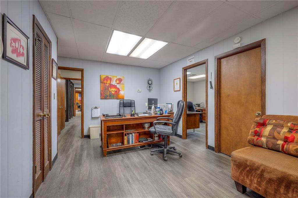 Stand Alone Office/Flex/Storage building!! Ideal for Owner-Users, Investors, or Professional Tenants. Prime Johnson County location in Lenexa - just minutes from I-35, I-435 and 69Hwy. This well-maintained property features a full walkout basement and direct entry into both levels. Very well suited for multi-use operations or private team environments. With three rear-access garage bays and a private asphalt parking lot, accommodating 28+ vehicles, the site supports businesses with storage and office needs. Sitting on a .58 acre lot, this property combines daily functionality with long-term investment potential.