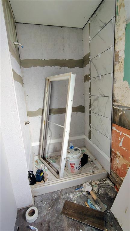 Full bath featuring a shower stall