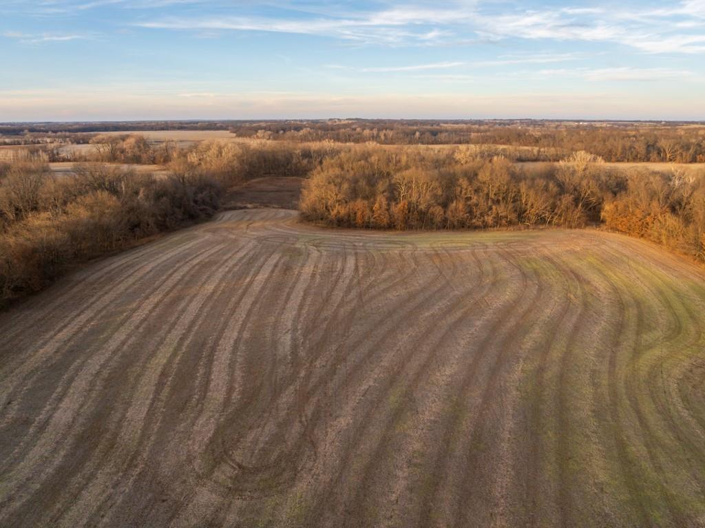 This highly productive 320± acre farm in Johnson County, Missouri offers an exceptional blend of income-producing farmland, quality pasture, strong recreational value, and a classic country homesite. Ideally located just 6 miles east of Garden City and only 1 mile east of ZZ Highway, the property provides excellent access while maintaining a private, scenic setting. Approximately 140± acres of tillable ground are currently in production, supported by silt loam and silty clay loam soils. An additional 94± acres of fully fenced pasture features two large ponds and an automatic waterer, making it well suited for cattle or diversified livestock operations. Three usable grain bins, a 36x54 outbuilding with oversized bay doors, and ample equipment storage enhance the farm’s agricultural ability. The recreational appeal is equally impressive. Panther Creek winds through the north end of the farm, creating outstanding wildlife habitat. The timbered areas include marketable walnut and oak, dense cover, and abundant deer sign with well-worn trails, rubs, and scrapes—ideal for hunting and outdoor enjoyment. Overlooking the surrounding countryside is a well-positioned two-story farmhouse. The home includes three bedrooms and a loft upstairs, with a comfortable main level featuring living and dining areas, kitchen, sunroom, mudroom, one bedroom, and a full bathroom. Additional improvements include a detached two-car garage with concrete floor, utilities consisting of rural water, electric, and a drilled well, and a picturesque tree-lined driveway off SW 1225th Road.