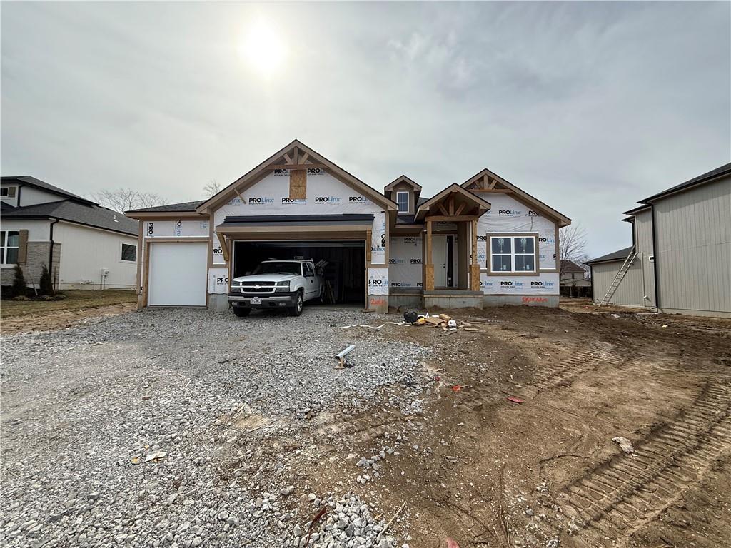 Brand new reverse home coming to you from Trumark Custom Homes! Introducing the "Kyle 1.5"! The vaulted great room stuns with a cozy fireplace and flows seamlessly into the open-concept kitchen featuring a large center island, generous pantry, and stylish dining area with direct access to the covered patio—perfect for indoor-outdoor entertaining. The main-level primary suite is a true retreat with a spa-like bath, an oversized walk-in closet, and convenient access to the laundry room. A second main-level bedroom and full bath add flexibility for guests or a home office. The fully finished lower level offers even more living space with a spacious family room, three additional bedrooms, and two full baths. Step outside to enjoy the covered patio and peaceful, tree-lined backdrop—privacy and new construction wrapped into one beautiful package. While living in Woodland Oaks, enjoy the benefits of exclusive amenities in the surrounding area, including Lake Jacomo! Woodland Oaks is also a short walk away from Legacy Park, with a state-of-the-art community center, and the Legacy Park Amphitheater. Enjoy miles of walking trails, a disc golf course, and sports facilities for all ages, all in a convenient location to your home. Home is under construction and final pricing is subject to change. The specification sheet will outline planned finishes for this property, and supersede any details, photos, drawings, or depictions used for marketing purposes on this listing.