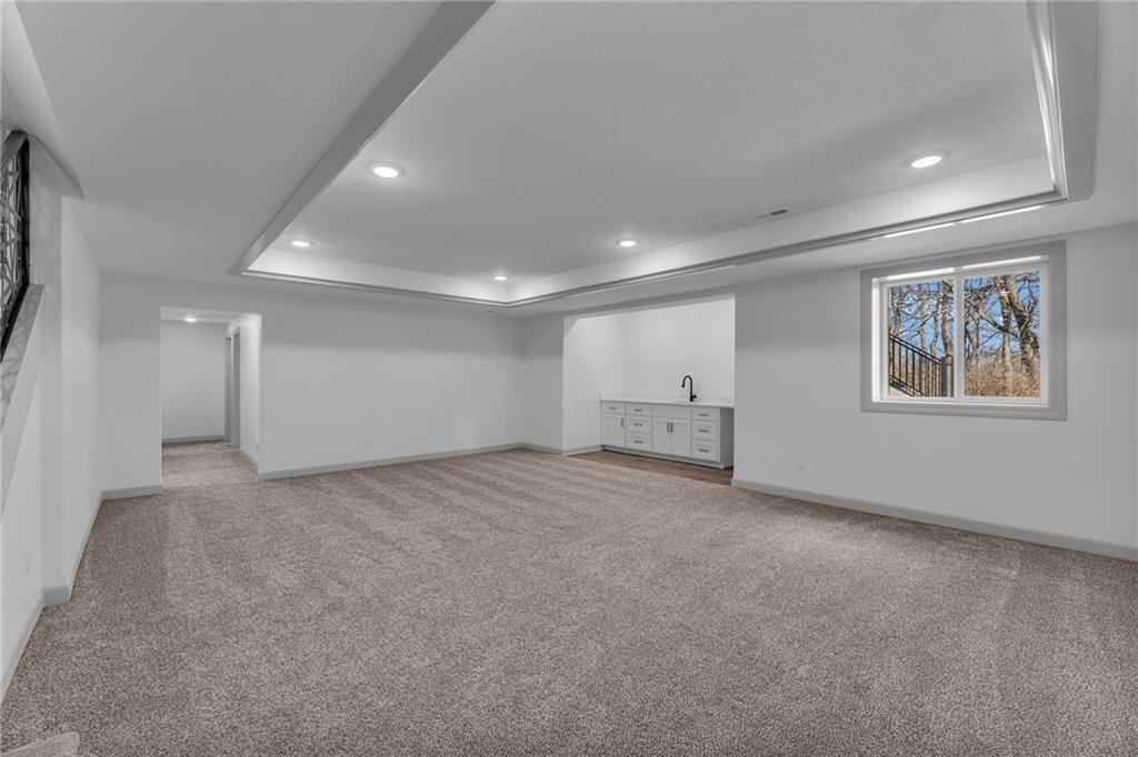 The Bridgeport II floorplan built by Drippé Homes. Modern finished open concept daylight basement with tons of natural light! Kitchen furnished with stainless appliances, gas cooktop, hood vent, microwave, wall oven, quartz countertops, large island with oversized sink and spacious walk in pantry. Two bedrooms on main with primary opposite other bedroom. Ensuite features double vanity, tiled walk-in shower, private water closet and gigantic closet with pass through to laundry. Mudroom off garage with boot bench. Finished basement with two additional bedrooms and rec room complete with wet bar, ready for hosting the next big game. Cozy up to the fireplace in the living room or enjoy the sunrise from the covered composite deck. Home backs to tree-line providing ultimate privacy with sod and sprinkler system included. Unfinished basement storage and three car garage provide plenty of storage. Almost ready for your personal touch - schedule a showing today!