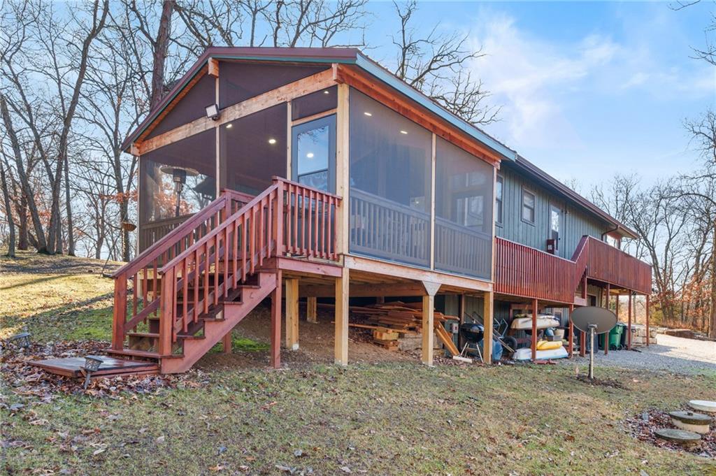 Lake Viking rare find with a boat slip at the Yacht Club. This property is situated on 1.3 acres near the South Entrance and offers a private, wooded setting with abundant wildlife and a treehouse-like feel. The home features 3 bedrooms and 3 bathrooms with numerous recent updates, including a new roof, new flooring, shiplap accent walls and ceilings, and fresh paint throughout. The open-concept kitchen includes freshly painted cabinets, quartz countertops, and comes fully equipped with appliances, including the washer and dryer. The primary bedroom offers a shower and a large window with peaceful views of the wooded lot. For those seeking a quiet retreat, the large covered and screened-in porch provides an ideal space to relax and enjoy the natural surroundings. The unfinished basement includes a pellet stove and offers excellent potential for a workshop or future finished living space. Additional features include a one-car garage. The sellers are open to offers on furnishings, and the boat is available for purchase separately.