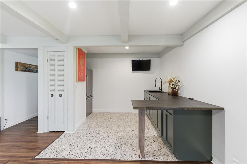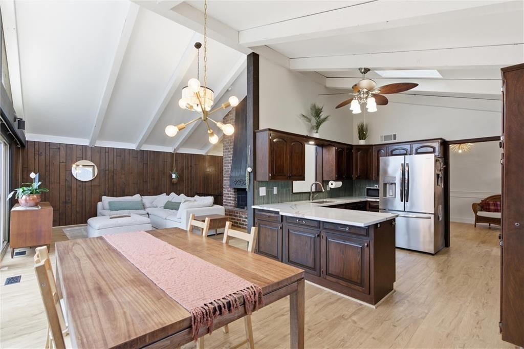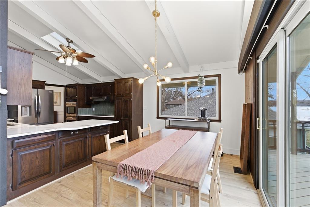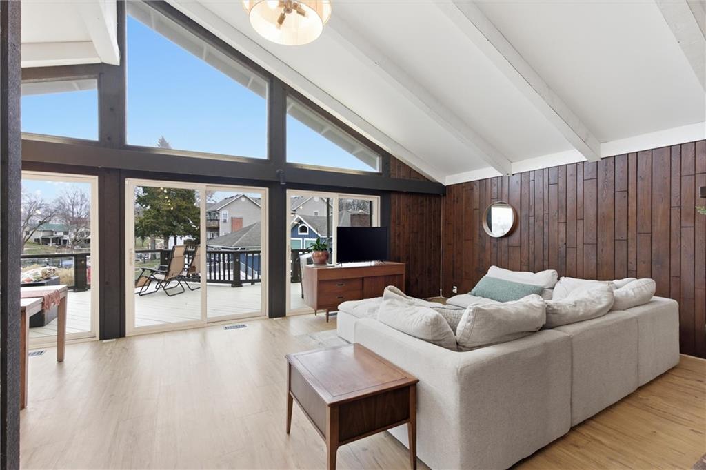 Mid-century modern AND lake front! Tucked back in a quiet cove yet perfectly positioned for long, open views down the main channel, this updated mid-century modern lakefront home delivers the best of Lake Tapawingo living. The setting is peaceful, the views are expansive, and the water access is exceptional — complete with your own dock and an impressive seawall featuring wide concrete steps that make swimming and lake days effortless. Inside, you’ll find over 3,000 square feet, five bedrooms, and four baths, thoughtfully updated while preserving the character that makes mid-century design so timeless. Clean lines, warm details, and architectural touches remain, blended seamlessly with modern finishes. The main level is designed for everyday comfort and easy entertaining. The primary suite is conveniently located on this floor with a private en suite bath and generous closet space. Additional rooms and a main bath flow naturally toward the heart of the home — a stunning living room anchored by a grand fireplace, open to the kitchen and framed by floor-to-ceiling windows that showcase both the architecture and the lake beyond. Downstairs, the vibe shifts into full lake-life mode. A second living area features a completely renovated bar, creating the perfect space for hosting friends after a day on the water or gathering for weekend lake parties. Additional rooms down the hall offer flexibility — home offices, guest rooms, workout space, or whatever fits your lifestyle. Beyond the home itself, Lake Tapawingo is known for its strong sense of community. Neighbors know each other, events fill the calendar, and the lake becomes a shared backdrop for daily life. Boating, kayaking, wakeboarding, fishing, swimming — it’s all right outside your door. Architectural, inviting, and set in one of the most special lake communities around, this is a home that truly needs to be experienced in person to be appreciated.