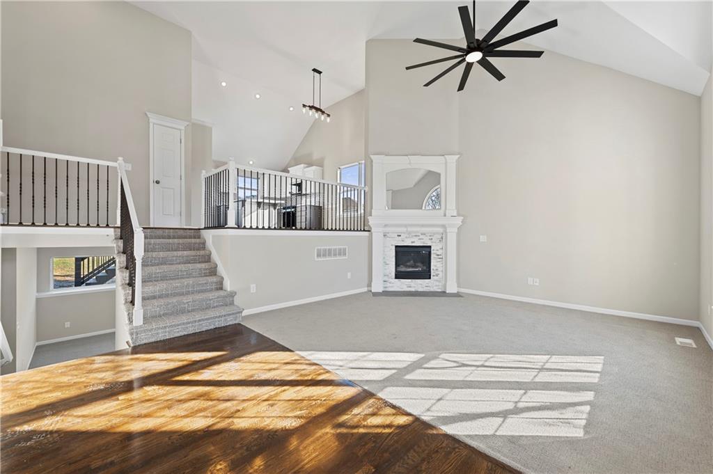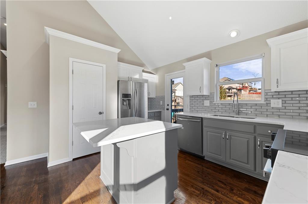 Happy New Year! Minutes from Proposed Chiefs move to Kansas City-KANSAS! Stunning top to Bottom Remodel; Full Farm House Contemporary Pallet. All New floor coverings, completely remodeled kitchen with solid surface counters, new mirrored title backsplash, new appliances, new sink, new disposal, freshly enameled kitchen cabinets, All new light fixtures throughout, refinished hardwood floors, top-to-bottom remodeled Master Bath, Glass walk-in shower, marble tile, granite tops, tile floors. Freshly painted interior and Exterior, and Stacked Marble Hearthroom. Home is an Entertainer's Dream, with a completely open concept. Home offers soaring ceilings even for a F/B Split/California Split, offering ceiling heights of 10 or 12ft even in hallways. 2-bedrooms on Kitchen Level, separated by bath with fresh tile, tile surround, and Laundry Room. Floorplan offers a 3rd Floor Master/Primary Bedroom with complete Privacy, Vaulted Ceiling, sitting bump out, and huge windows. Master/Primary Bath offers dual sinks, a free-standing tub, glass walkin shower, and an enormous closet. Home offers a 4-car garage, soaring ceilings (which could accommodate lifts-Perfect for the Car enthusiast). Gorgeous! Premium Location – Conveniently located just minutes from I-435, with easy access to the airport, The Legends, Zona Rosa, Sporting KC, shopping, and fine dining. This home is a rare find, modern, elegant, and move-in ready. Don’t miss the opportunity to own this exceptional property in a sought-after location with great schools! Schedule your private showing today and experience luxury living at its finest!