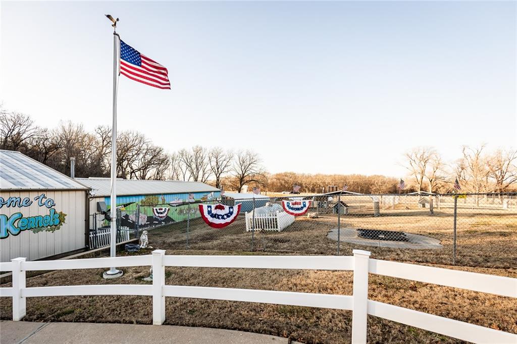 RC Kennels is a rare opportunity to acquire a long-established, profitable dog and cat daycare, boarding, and grooming facility paired with a fully updated residence on 43 +/- acres in Geary County, Kansas, located just outside the main gate of Fort Riley in Junction City. In operation for over 43 years, the business has demonstrated consistent performance with strong gross revenues and stable EBITDA, supported by a loyal and recurring customer base that includes a large military population. RC Kennels also benefits from an exceptional online reputation, boasting outstanding Google reviews and a 100% recommendation rating on Facebook, further reinforcing the strength of the brand and community trust. The property is thoughtfully improved for both business and residential use. The ranch-style home features 4 bedrooms, 2 full baths, a finished basement, and an attached 2-car garage, with extensive updates including new vinyl flooring, cabinets, countertops, newer HVAC and water heater, and a brand-new roof installed in 2025. Additional lifestyle amenities include a hot tub, gazebo, walk-in pantry, and spacious living areas. Complementing the residence is a separate, fully finished shop and event space, fully insulated and equipped with finished flooring, electrical, WiFi, lounge areas, and a mini-split heating and cooling system - offering flexible use for gatherings, storage, or business-related functions. The kennel facility is fully operational and purpose-built, featuring a welcoming office and lobby, 66 indoor runs, 45 outdoor runs, 3 indoor/outdoor runs, 7 outdoor fully fenced play areas, and 8 indoor cat suites. The operation is supported by two grooming rooms, two wash bays, food storage and laundry areas, extensive concrete flooring, integrated drainage and wash-out systems, and five HVAC systems, allowing for efficient, scalable operations.