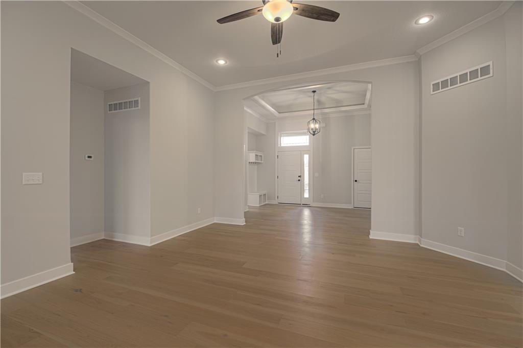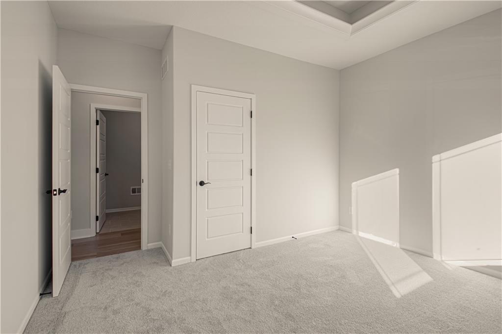 Welcome to the Richmond, a beautifully crafted ranch floorplan by Hoffmann Custom Homes, situated in the highly sought-after Platte County School District. Designed with both style and function in mind, this thoughtfully planned floor plan offers true main-level living with a private primary suite featuring an ensuite bath, along with two additional generously sized bedrooms and a full bathroom. The entryway opens to a spacious great room with soaring ceilings, creating an inviting and open atmosphere. The open-concept kitchen is a standout, showcasing creamy white enameled cabinetry, fresh modern lighting, under-cabinet lighting, a walk-in pantry, and a large island topped with light quartz—perfect for everyday living and entertaining alike. Just off the dining area, a covered deck provides convenient access to outdoor living. Additional main-level features include beautiful engineers hardwoods, a laundry room, coat closet, and a functional drop zone, offering ample storage and organization. Built with 2x6 exterior wall construction, this home is engineered for durability and enhanced energy efficiency. It comes pre-wired for future solar panels, includes an EV charger receptacle, and features additional energy-efficient upgrades throughout. A 10-year structural warranty adds peace of mind. The lower level is stubbed for a future bathroom, allowing flexibility for future expansion or customization. This home seamlessly blends quality craftsmanship, modern finishes, and forward-thinking efficiency in an exceptional location.