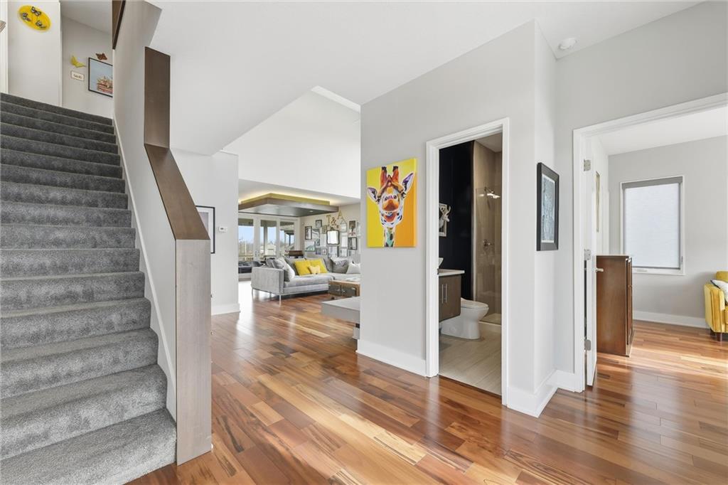 Come tour this contemporary beauty in the sought after Overland Ridge community. Built by Suma Design & Construction, this property boasts 22-foot ceilings in the great room, along with a statement fireplace with designer tile and hearth. Floor to ceiling windows flood the home with natural light. The spacious kitchen offers a gas cooktop, walk-in pantry and Bosch appliances. The expansive primary suite features a spa-like bath, complete with a free standing soaker tub and make-up counter. The 4th bedroom on the main level could double as a home office. A finished lower level provides additional living space with an exercise room (could also serve as a playroom) and a generous non-conforming 5th bedroom with an egress, good-sized closet and a stunning en suite with double vanity, quartz tops, upgraded tile and shower. Extend your entertaining onto the covered composite deck. The owners also added a patio in the back and upgraded landscaping. The oversized 3-car side entry garage has a 240 outlet for an EV. Just a short walk to the community pool and the back deck offers a great view of fireworks on the 4th. This lightly-lived in home is a must-see.
