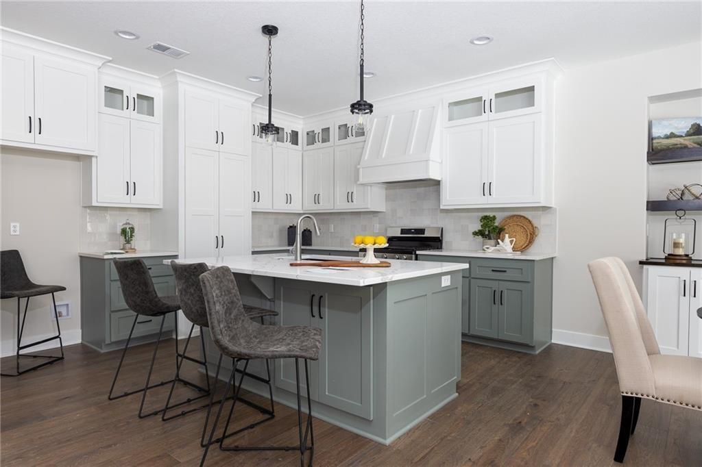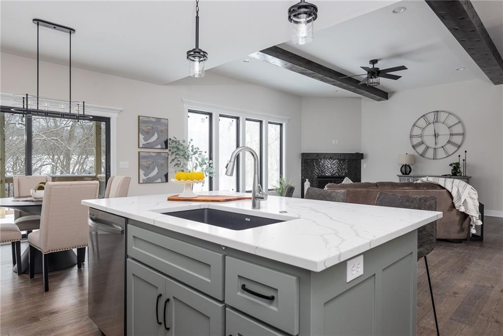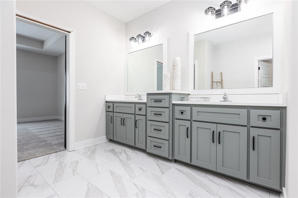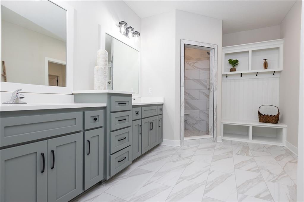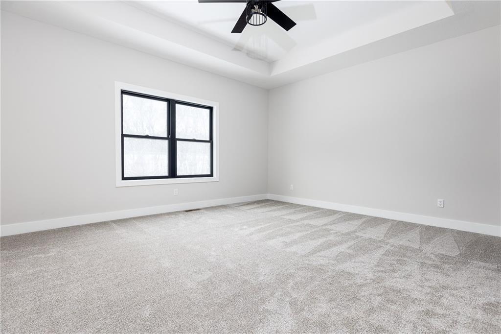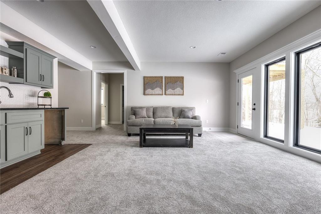 Welcome to this stunning reverse 1.5-story home in the highly sought-after Seven Bridges community, beautifully crafted by J&B Custom Homes. The Bradford floor plan offers the best of single-level living with thoughtfully expanded space, blending refined design with everyday comfort. This 5-bedroom, 3-full-bath residence showcases an open, airy layout filled with natural light and elevated finishes throughout. The heart of the home is the impressive kitchen, featuring a large island, walk-in pantry, and seamless flow into the living and dining areas—perfect for both entertaining and daily living. The primary suite is a true retreat, highlighted by a spa-inspired bath with a relaxing sitting area and a spacious walk-in closet complete with built-in shelving. The walk-out lot enhances the home’s connection to the outdoors, offering endless potential for outdoor living and enjoyment. With its stunning design, luxurious details, and exceptional craftsmanship, this home delivers both elegance and functionality in one remarkable package.