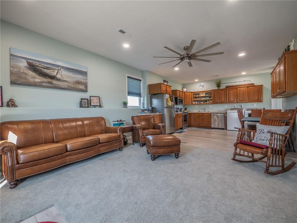 Situated on 2.74 acres at the edge of town and outside of a subdivision, this like-new property offers exceptional versatility. Currently configured as a duplex built in 2017, the owner is willing to convert it to a single-family home if desired. The main residence features 3 bedrooms and 2 bathrooms with a spacious living room, kitchen, and laundry area. The second unit includes 2 bedrooms, 1 bathroom, a living room, and kitchen with laundry hookups. All appliances remain for both units, excluding the washer and dryer in the 2-bedroom unit. The 2-bedroom unit has its own parking and private patio area. The main home offers a large fenced yard and patio, along with a 30x30 detached garage and an additional shed, both included. There is also ample space on the west side of the property for a future large outbuilding. This property offers a unique opportunity to live in one unit and generate income from the other, or accommodate multi-generational living. A must-see with many possibilities