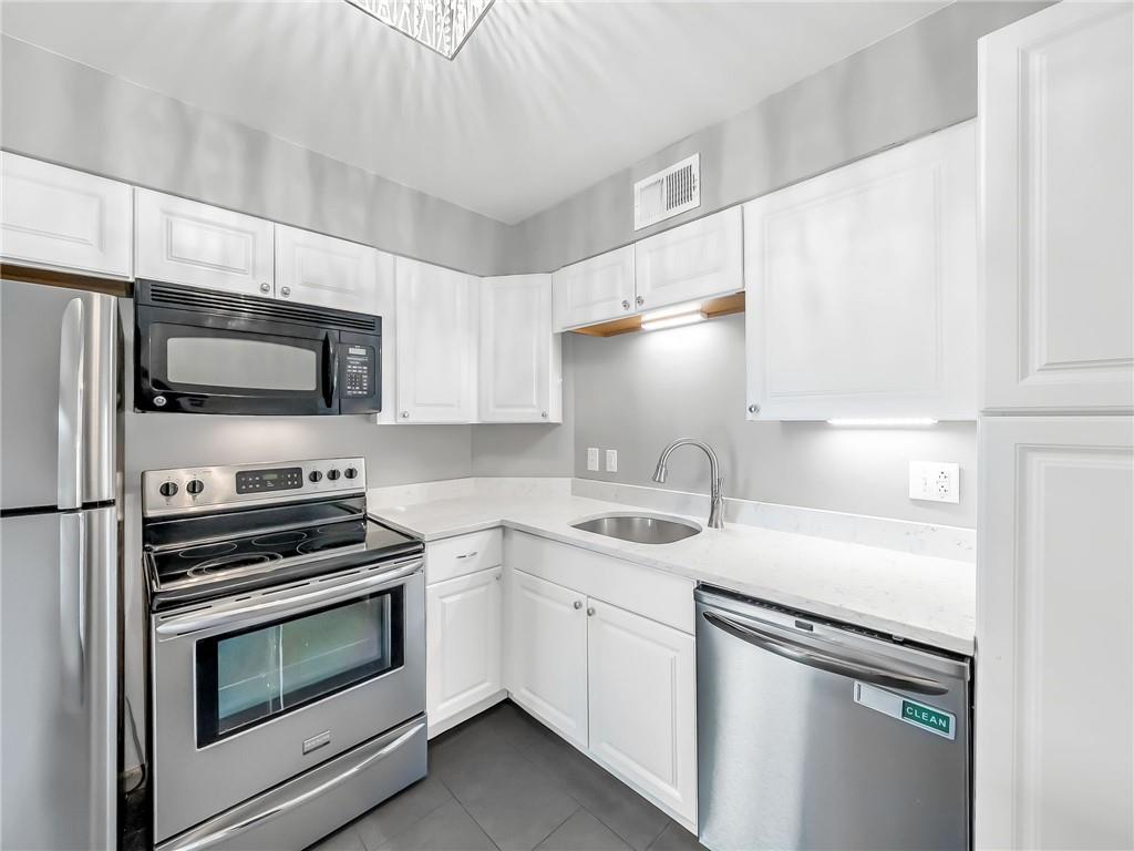 WEST PLAZA CONDO at a GREAT PRICE! This 2 bed/1 bath condo is BRIGHT, CHEERY and ready for its next owner! Remodeled Kitchen features newer cabinets, quartz countertops and stainless appliances (including a dishwasher!). Full bathroom has NEW floor & wall tile, double vanity with granite countertop plus tons of storage. Living room with original hardwoods and brick fireplace. Unit is full of charm AND updates! Both bedrooms are nice sized. Bedroom 2 has washer/dryer in closet - stays with property! Balcony off the living room overlooks common areas. Secure building has gated entry plus great outdoor space with large patio & grill area. RESERVED PARKING SPOT INCLUDED. Additional storage spot in basement. Google Fiber installed. HOA Includes: exterior insurance, water, building/common area maintenance, snow removal and trash. PRIME LOCATION close to KU Med, 39th Street, Westport, and the Plaza. Rentals allowed (6-month minimum). A great way to get into this neighborhood!