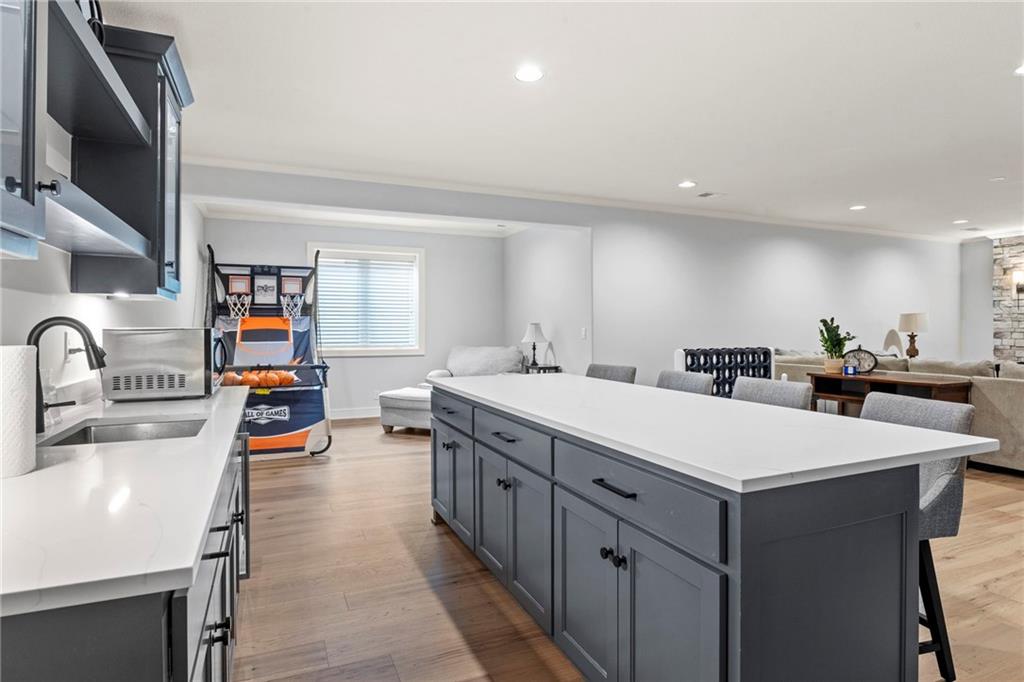 Better than new 1.5 Story Hamilton by BICKIMER HOMES located in a cul-de-sac backing to GREENSPACE! Full of upgrades including the iconic circular staircase, a GRAND TWO STORY GREAT ROOM full of windows, large covered patio that walks out to a spacious level yard backing to green space and trees, elegant curved stairs, MAIN FLOOR PRIMARY SUITE w/ large DOUBLE WALK-IN CLOSETS, unique main level FLEX ROOM/OFFICE just off the kitchen, spacious kitchen with large prep pantry. Three bedrooms upstairs, each with private ensuite baths plus an OVERSIZED BONUS LOFT UPSTAIRS! FINISHED BASEMENT with large recreational room, wet bar and bedroom. TWO LAUNDRY ROOMS (main floor laundry and second floor laundry) to accommodate busy family lifestyle! Future MEDIA ROOM stubbed out or use as addtl storage. Century Farms is a new upscale community located on a rolling hillside in Overland Park. Resort style swimming pool with slide, stunning club house with fitness room, kids play area, community vegetable garden, and pickle ball courts! Blue Valley Schools in Overland Park just off Quivira at 167th Street.