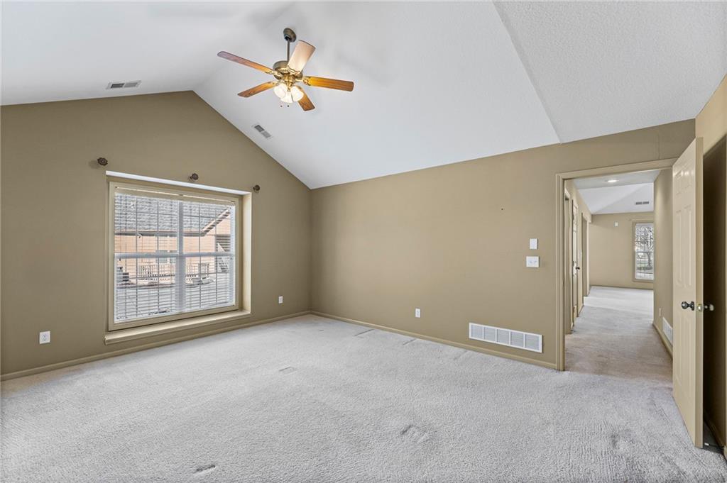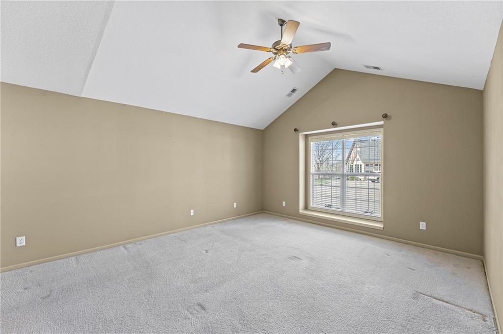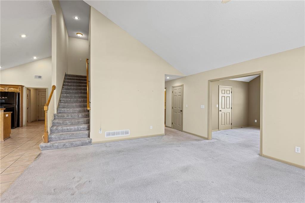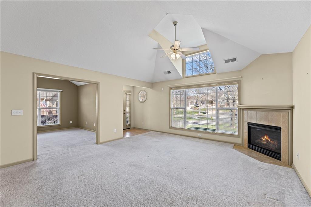 Enjoy The Comfort and Elegance Of Living In This Terrific 1.5 Story Patio/Villa! Located on a cul-de-sac within the coveted St. James Court Subdivision and Blue Valley School District, this maintenance-provided community has no age restrictions. It has a spacious open floor plan along with lofty ceilings that enhance the overall sense of openness and grandeur. The gleaming tile floors reflect natural light throughout the spaces while the elegant great room fireplace provides warmth and charm to this superb house. The terrific kitchen and adjoining dining area boasts plenty of countertop space, tile flooring, breakfast bar, lots of cabinets, pantry, built-in desk. The impressive 16x18 great room showcases the fireplace, c/ fan, carpeting and a wall of windows with lots of natural light. It has a versatile 12x12 sunroom for morning coffee, dining, relaxing and is equipped with tile flooring, vaulted ceiling, double french doors, c/fan, plenty of light. Convenient office area with carpeting, c/fan, window, walk in closet; and with the addition of doors, it can easily be transformed into a third conforming bedroom. The primary suite features a sanctuary of comfort and elegance as it spotlights a spacious bedroom with carpeting, vaulted ceiling, c/fan along with an exquisite en-suite bathroom that includes d/v, ceramic tile, separate shower/tub and huge walk in closet providing a true oasis retreat. It offers one more full bathroom and a laundry room for the ultimate convenience and comfort. The upper level comprises an additional spacious bedroom and a modern full bathroom. This awesome home showcases other features including new roof (2025), thermal windows, sprinkler system plus all of the kitchen appliances are staying too! Incredible HOA amenities include club house, exercise room, party room, swimming pool, trails, lawn maintenance, snow removal and many other items! Wonderful curb appeal, fantastic location along with nearby Blackbob and Heritage Parks!!