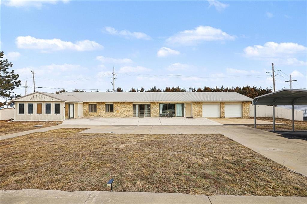 Tucked away on 5.09 private, gated acres, this unique earth-contact home offers peaceful living surrounded by nature. Featuring 3 bedrooms, 2 bathrooms, and 2,250 square feet, the home blends comfortable living with a truly serene setting. The primary suite includes an en suite bath and a sunroom retreat—perfect for morning coffee or unwinding while overlooking the natural landscape. The property showcases a private, stocked pond, ideal for fishing or simply enjoying the quiet views and wildlife. A private drive with gate, carport, and expansive acreage create a rare sense of seclusion while still being conveniently located in Olathe. Whether you’re seeking privacy, space to roam, or a one-of-a-kind setting, this property offers endless potential and a lifestyle that’s hard to find.