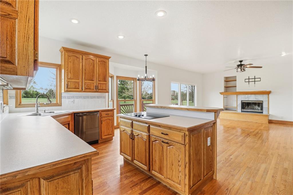 Welcome to this spacious 1.5 story home, set on 5.7 acres and nestled in the highly sought after Bear Lake community and Basehor-Linwood school district. From the moment you step inside the house, you’ll appreciate the vaulted ceilings and large windows that create an open, airy feel throughout the entry, living and dining spaces. The thoughtfully designed floor plan flows seamlessly into a kitchen focused on function and featuring a center island perfect for everyday living, gathering, and entertaining. Downstairs, the finished walkout basement offers additional living space with plenty of flexibility for a second living area, home office, or recreation space. Step outside and enjoy the peaceful surroundings, with access to a 60 acre fishing lake and an 80 acre wildlife preserve complete with scenic walking trails. This properly truly offers the perfect balance of comfort, space and nature. Enjoy the peace of mind that comes with major updates already completed. Fresh interior paint in 2026 gives the home a bright, refreshed feel, while 2025 brought key exterior and system upgrades including a new front door, two sliding doors, water softener, and a resurfaced driveway. With a newer water heater, AC unit and furnace(2023), the heavy lifting has been done. Outside, a 30x40 concrete pad with electrical access offers endless possibilities for a shop, hobby space, or additional storage.