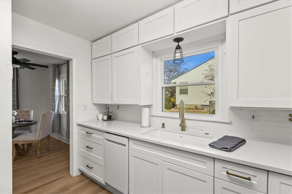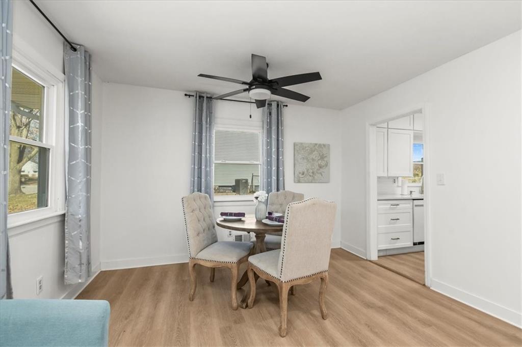 Discover your dream home in the heart of Independence, where classic charm meets modern luxury in this beautiful move-in ready ranch. Step inside to an open-concept living area that glows with natural light, highlighting the seamless luxury vinyl plank flooring that flows into an elegant eat-in kitchen. This chef-inspired space is a showstopper, featuring crisp white shaker cabinets, durable quartz countertops, and a sleek stainless steel appliance suite including a premium gas range. The attention to detail continues in the spa-like bathroom, boasting a stunning walk-in tile shower with a built-in bench, contemporary matte black fixtures, and a stylish marble-topped vanity. Outside, the property offers incredible versatility with a large level lot and a detached one-car garage perfect for a workshop or extra storage. Relax on the private back deck overlooking your spacious yard—an ideal setting for weekend gatherings or a peaceful morning coffee. Located in a quiet, established neighborhood with easy access to local amenities, this turnkey single-family home is a rare find for first-time buyers or those looking to downsize without compromising on style. Don't miss this opportunity to own a modern oasis with significant curb appeal and high-end finishes throughout.