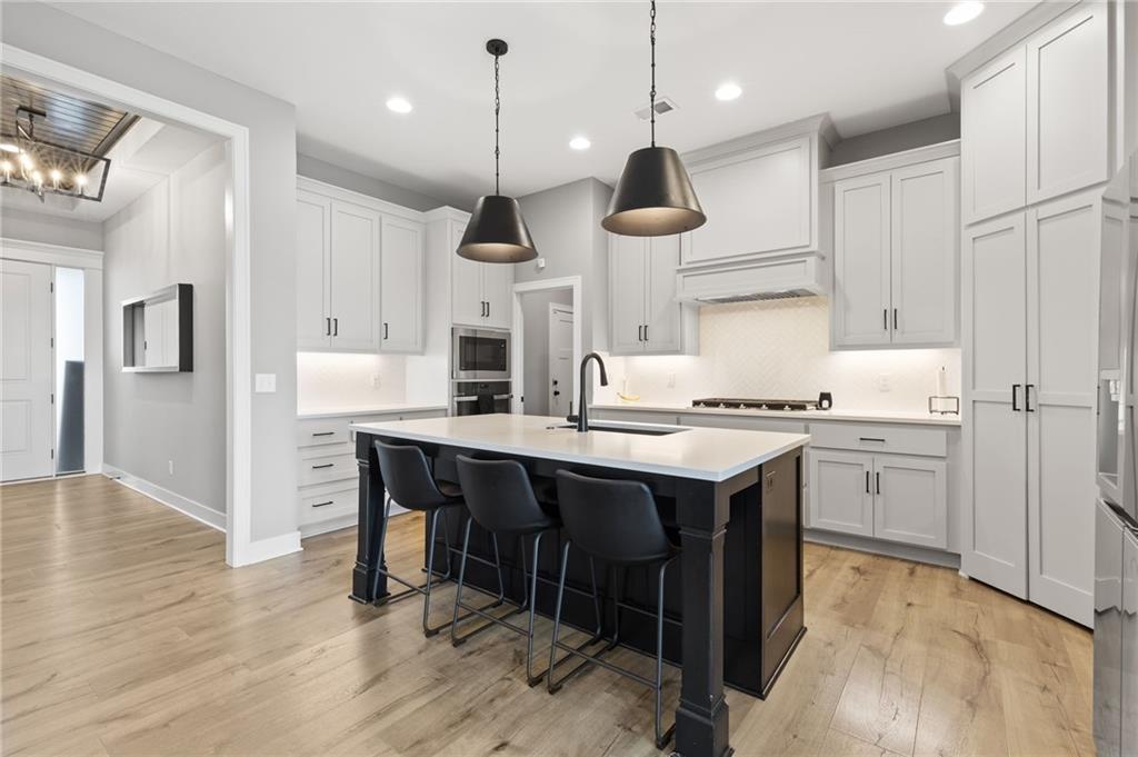 This BEAUTIFUL 5 bedroom, 3 bath home, built in 2022, combines modern design with comfortable living! The main level features 10 foot ceilings, designer finishes, and an open great room that flows into a chef’s kitchen with built-in appliances and generous storage. Primary suite offers a spa-inspired bath with an OVERSIZED ZERO ENTRY shower. The finished basement adds valuable living space with a rec room, wet bar, two bedrooms and one full bathroom. Enjoy the covered porch and spacious yard, as well as access to Pryor Ridge community amenities including trails, playground, courts, dog park, and pool!!
